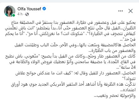 الصفحة الرئيسية سياسة ألفة يوسف تتحدث عن السفير الأمريكي بتونس وقصة الفيل والعصفور