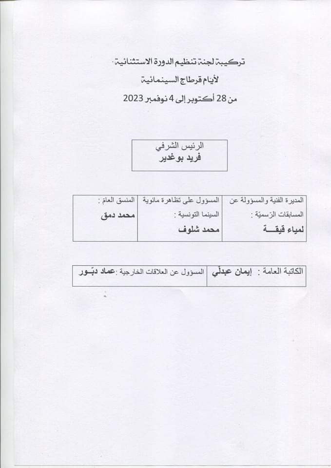 الصفحة الرئيسية ثقافة الإعلان عن لجنة تنظيم الدورة الاستثنائية لأيام قرطاج السينمائية
