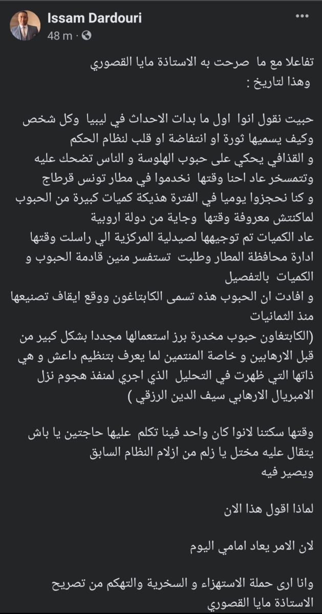 علق رئيس منظمة الأمن والمواطن عصام الدردوري على تصريحات مايا القصوري في علاقة بوجود "حفرة" في مطار تونس قرطاج يتم إدخال الأموال إلى تونس عبرها.
