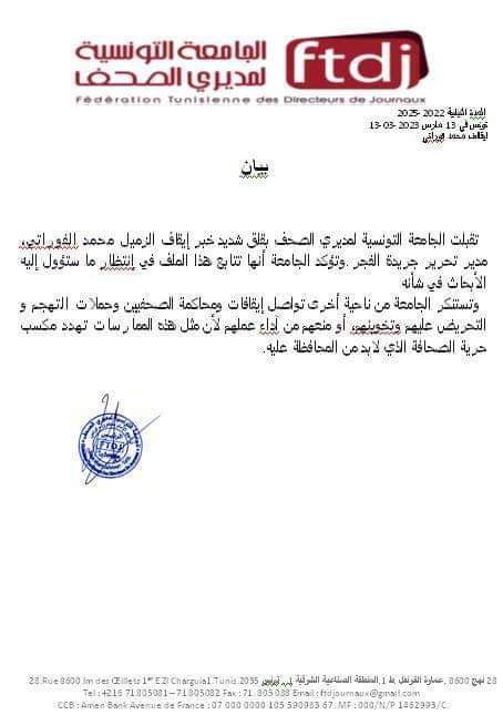 الصفحة الرئيسية الاخبار بلاغ لجامعة مديري الصحف بخصوص إيقاف مدير تحرير جريدة الفجر