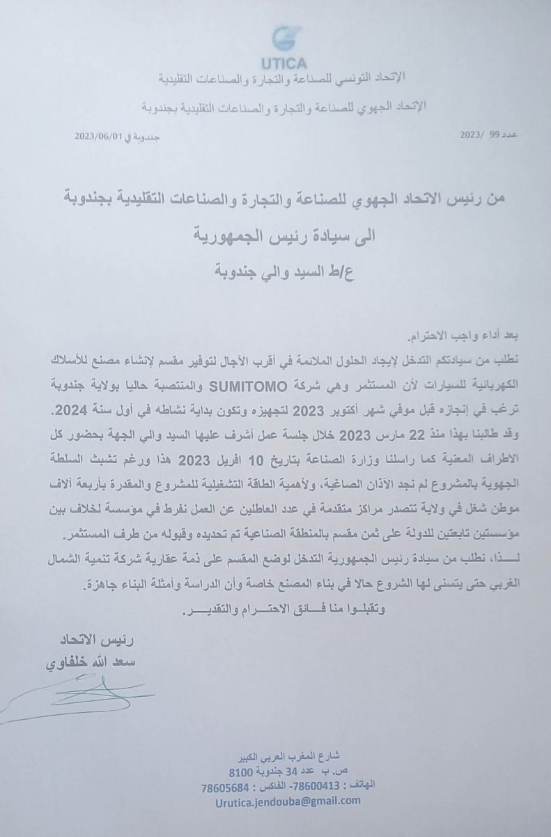 الصفحة الرئيسية جهات جندوبة/ “الأعراف” تطالب بتدخل رئيس الدولة لحل إشكاليات إنجاز معمل “الكوابل”