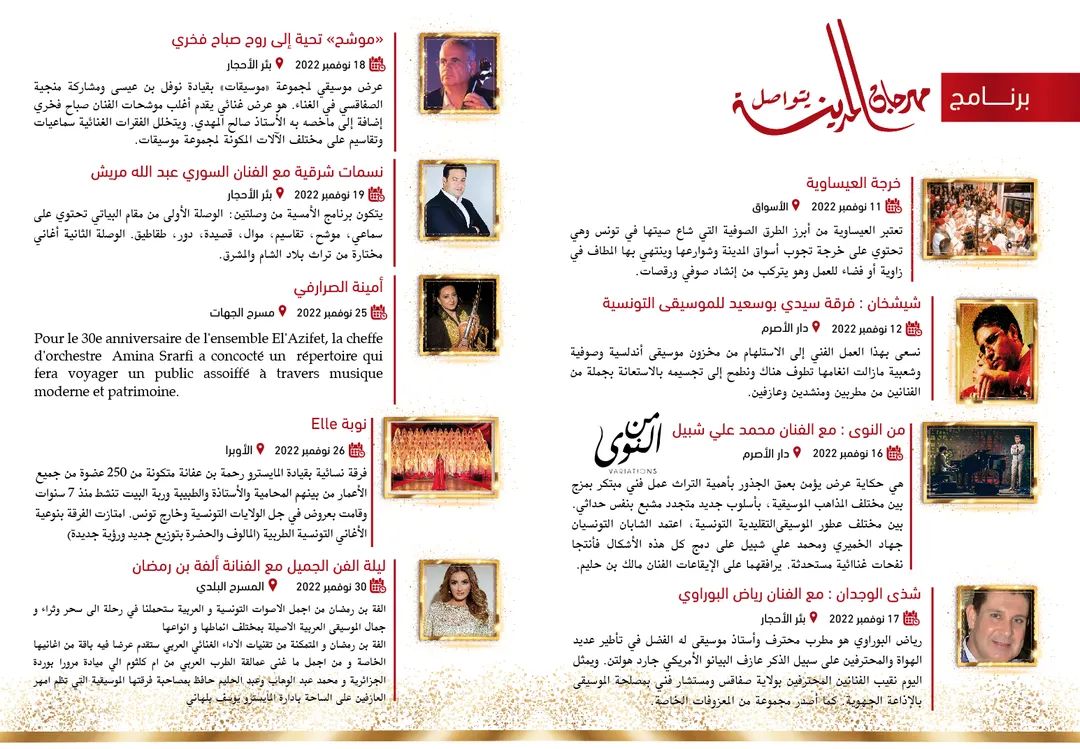 مهرجان المدينة الذي اقترنت برمجته بشهر رمضان يقترح على جمهوره سلسلة من العروض المتنوعة التي تمتد من الموروث التونسي إلى موسيقات العالم.