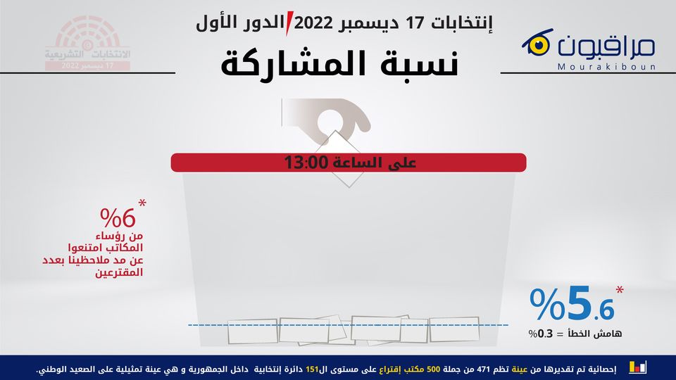الصفحة الرئيسية الاخبار “مراقبون”: 5.6% نسبة المشاركة في الانتخابات إلى غاية الواحدة بعد الزوال