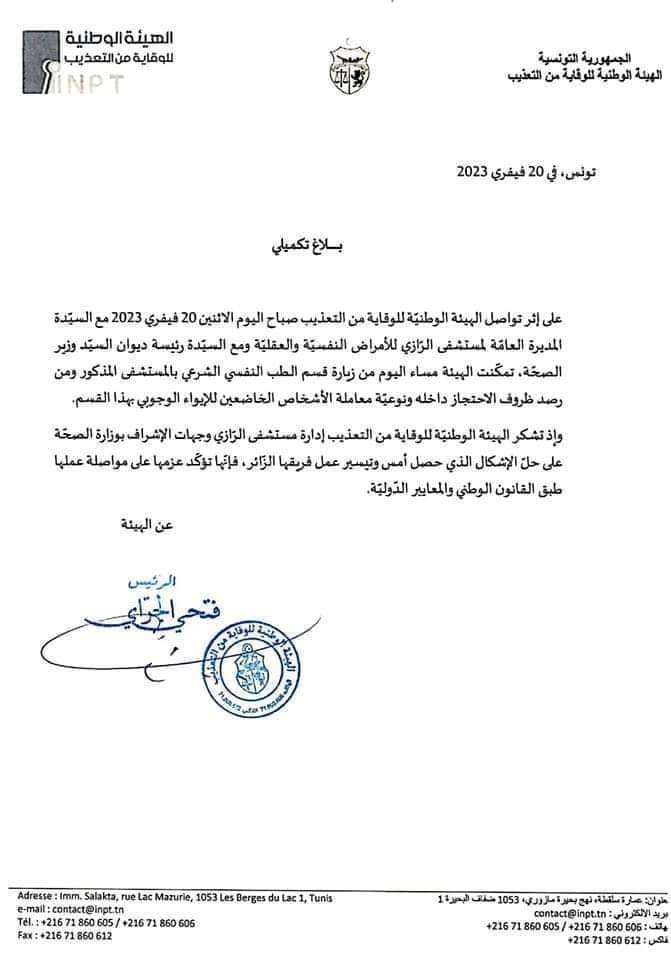 تمكنت الهيئة الوطنية للوقاية من التعذيب، مساء اليوم، من زيارة قسم الطب النفسي الشرعي بالمستشفى المذكور ومن رصد ظروف الاحتجاز داخله ونوعية معاملة الأشخاص الخاضعين للإيواء الوجوبي بهذا القسم.