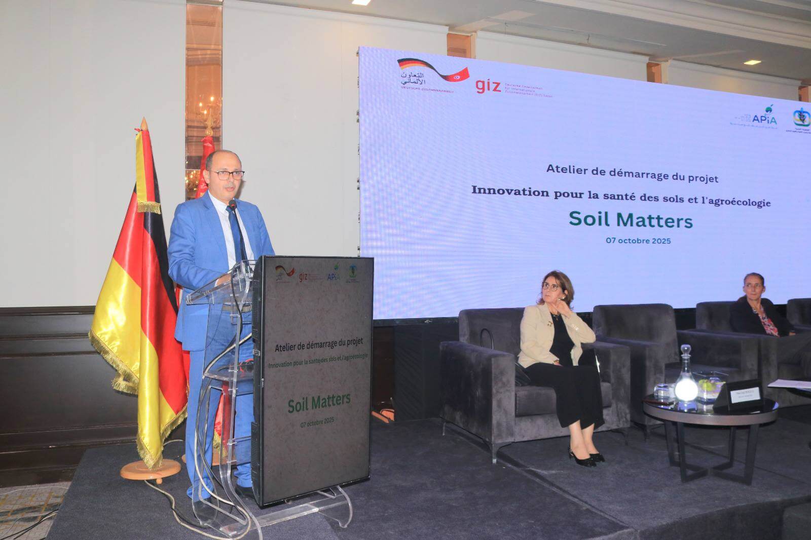 في إطار التعاون التونسي الألماني في مجال البيئة والموارد الطبيعية، انتُظمت اليوم الثلاثاء 7 أكتوبر 2025 ورشة عمل حول مشروع “Soil Matters”، المتعلق بتعزيز الابتكار في مجال صحة التربة ونشر الممارسات الزراعية الإيكولوجية.