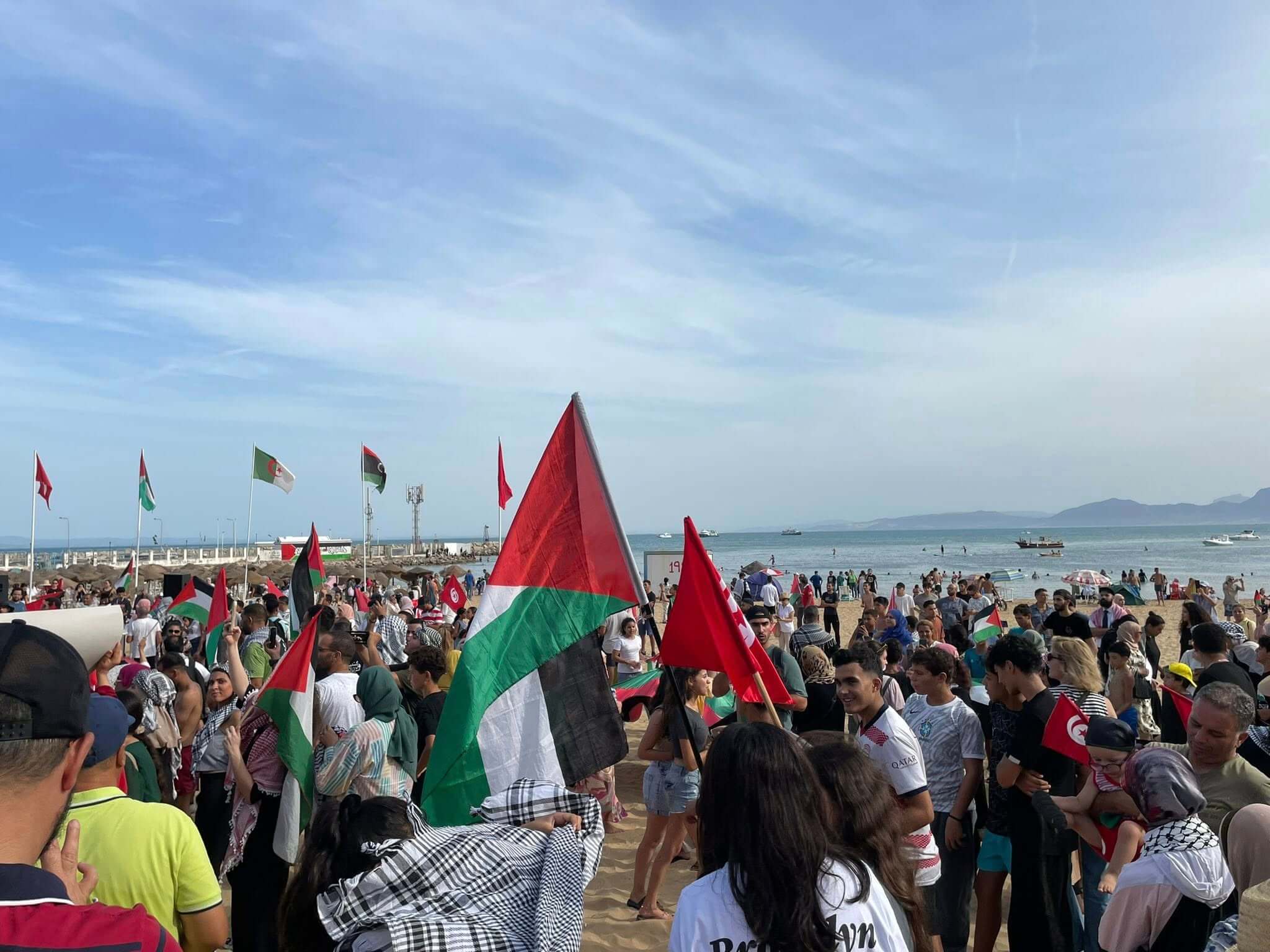 ارتفعت، مساء الأحد 7 سبتمبر 2025، أصوات مئات التونسيين والأجانب المتجمعين بميناء سيدي بوسعيد وهم يهتفون “Free, free Palestine… from the river to the sea”، في انتظار دخول أوّل سفن أسطول الصمود العالمي القادمة من إسبانيا إلى الميناء.