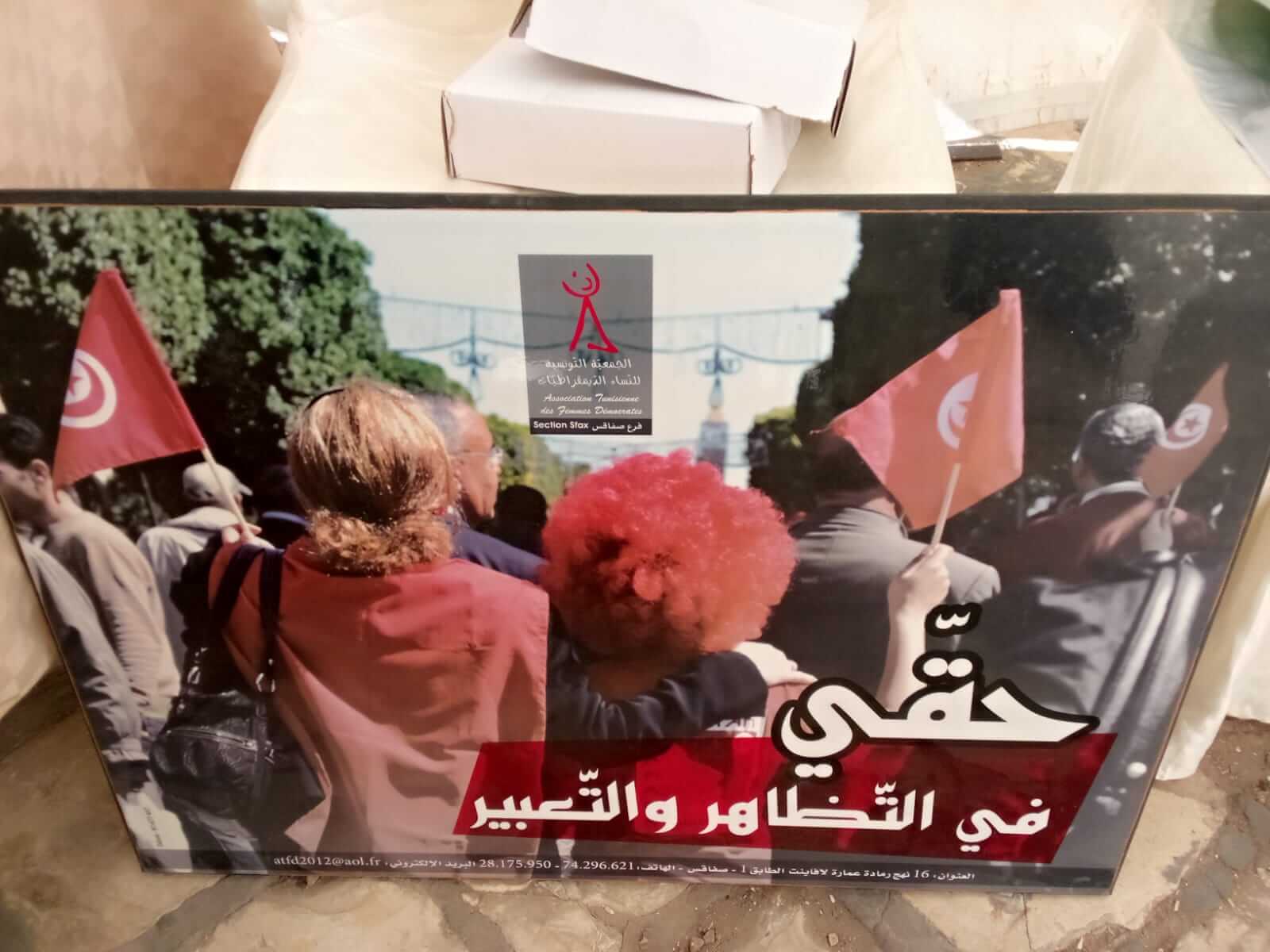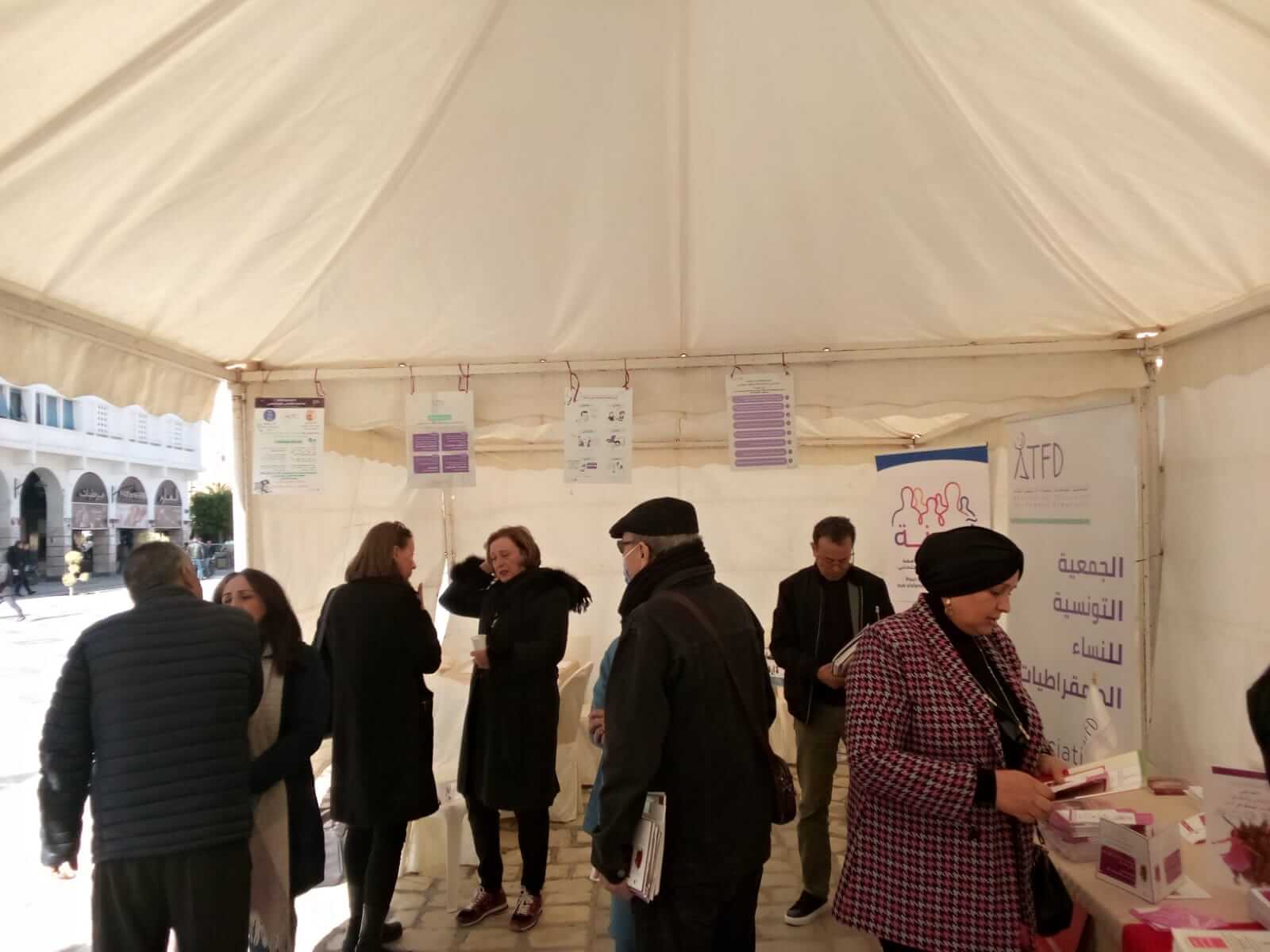 نظم فرع صفاقس للجمعية التونسية للنساء الديمقراطيات اليوم السبت 06 ديسمبر 2025 خيمة تحسيسية حول العنف المسلط على النساء وكيفية الوقاية منه في إطار الحملة الدولية للــ16 يوما من النشاط لسنة 2025 تحت شعار “اتحدوا! صفر تسامح مع العنف السيبراني – لا_للاعذار في مواجهة العنف الرقمي …العنف الرقمي هو عنف حقيقي ٫ بشارع 100 متر بمدينة صفاقس و ذلك بالشراكة مع صندوق الأمم المتحدة للسكان ضمن برنامج “امنة” (من أجل استجابة شاملة للعنف المبني على النوع الاجتماعي).