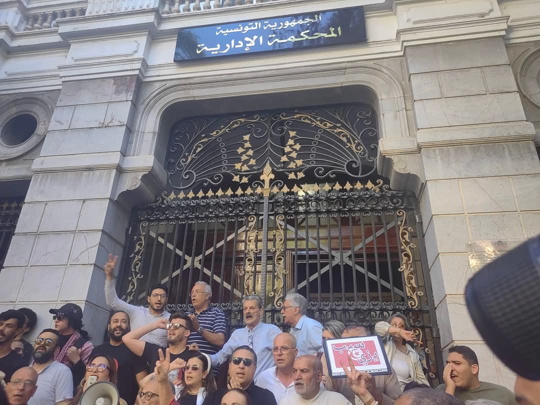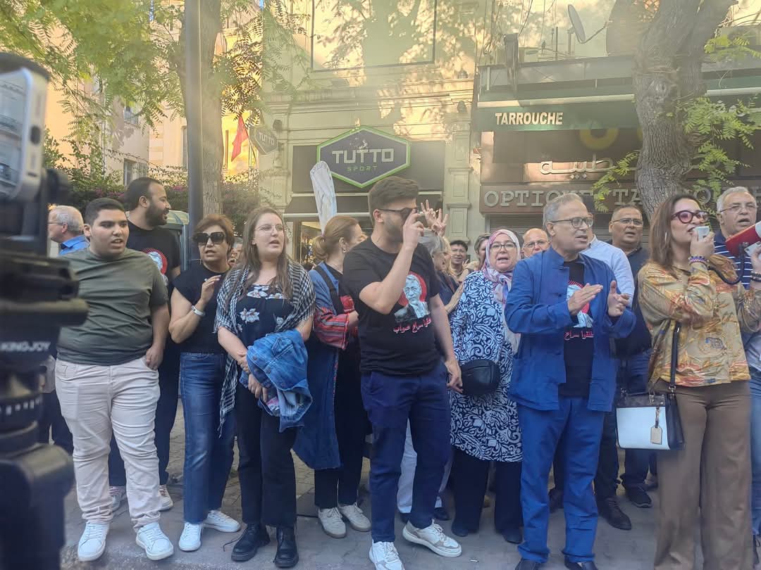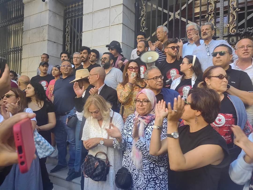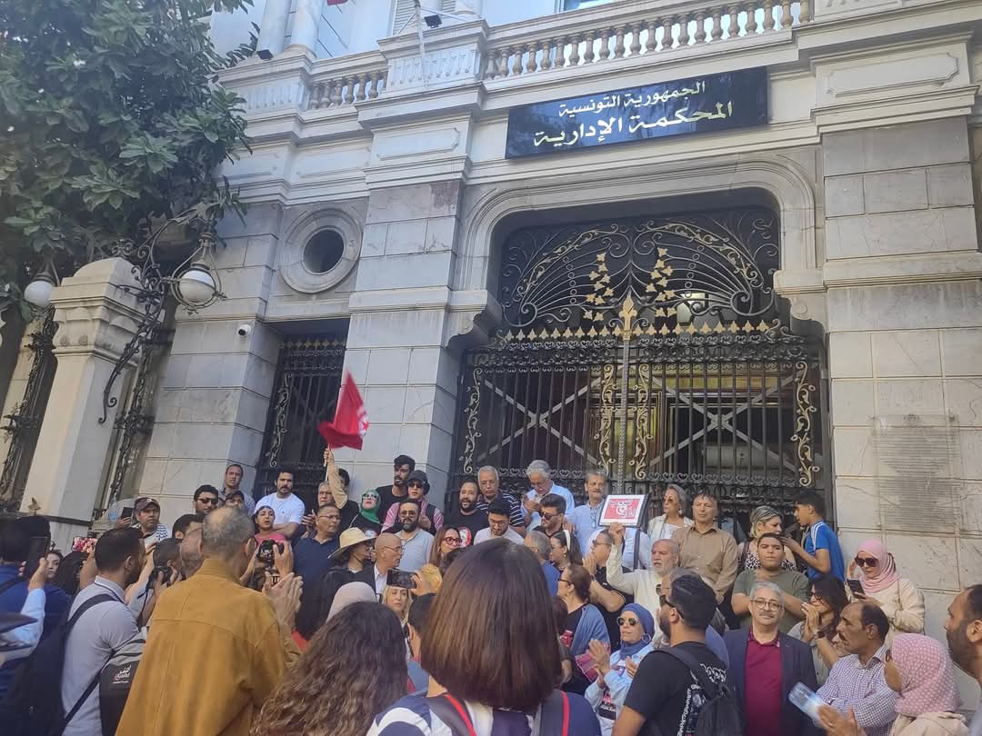 أمام المحكمة الإدارية بنهج روما اجتمعت وجوه سياسية وحقوقية وناشطون وصحفيون وغيرها في وقفة احتجاجية تضامنا مع القاضي الإداري السابق والمحامي أحمد صواب.