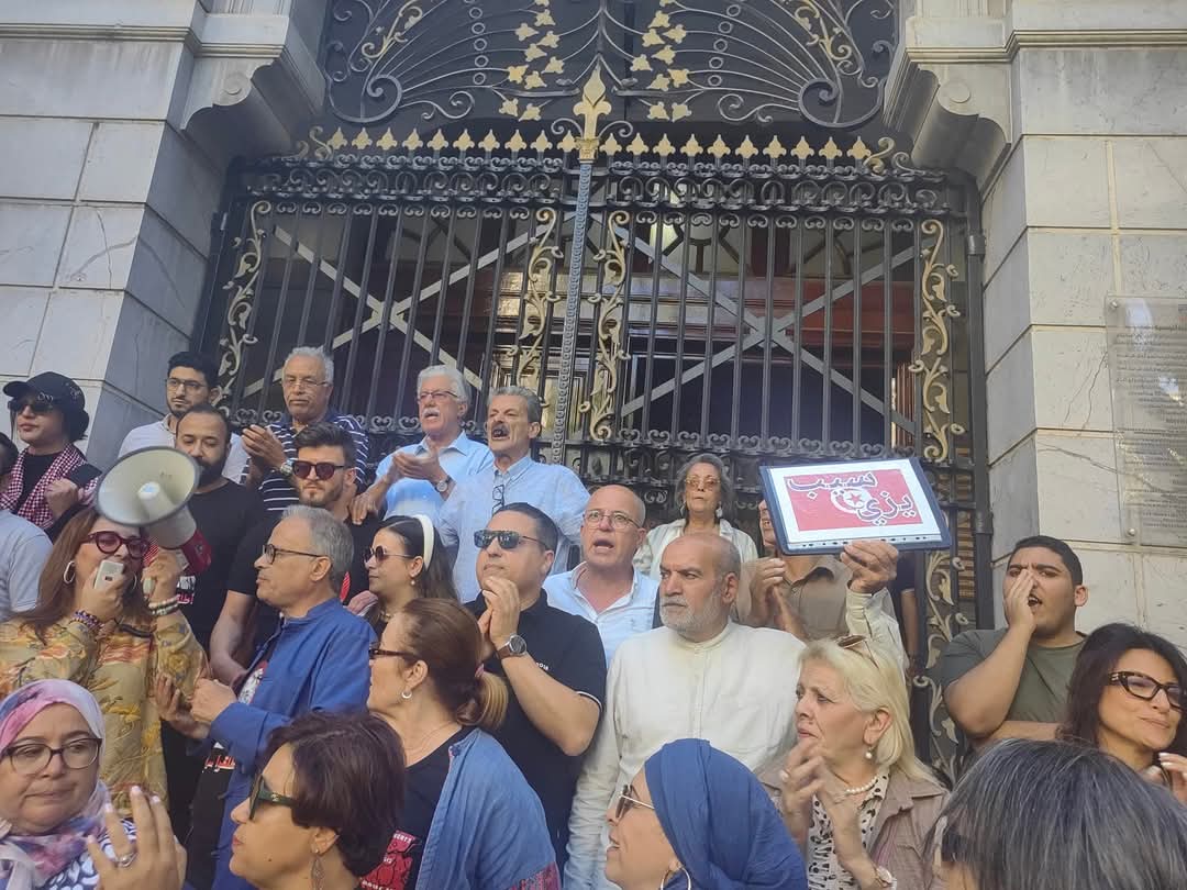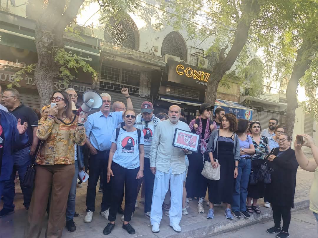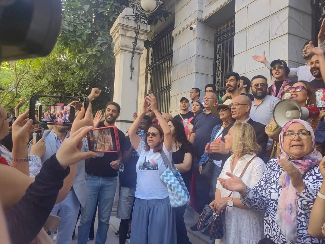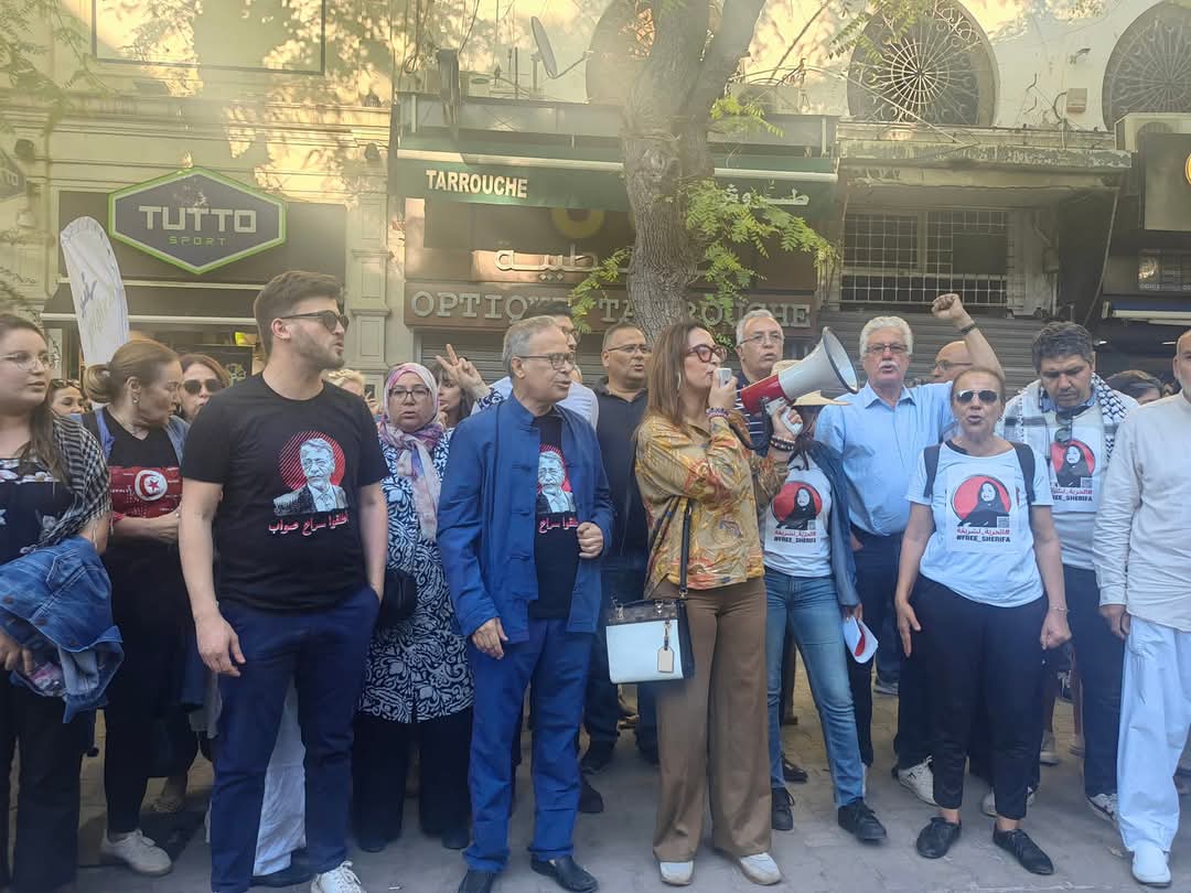 أمام المحكمة الإدارية بنهج روما اجتمعت وجوه سياسية وحقوقية وناشطون وصحفيون وغيرها في وقفة احتجاجية تضامنا مع القاضي الإداري السابق والمحامي أحمد صواب.