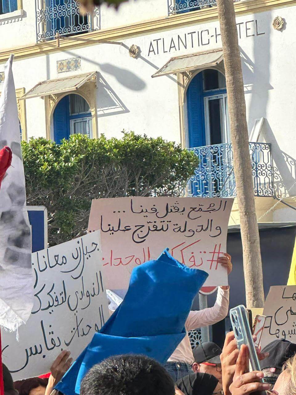 ورفع المشاركون في المسيرة شعارات تطالب بتفكيك الوحدات الصناعية ورفع المظلمة البيئية المسلطة على الجهة، في إطار حراك متواصل للمطالبة ببيئة سليمة وعدالة بيئية لأهالي قابس.