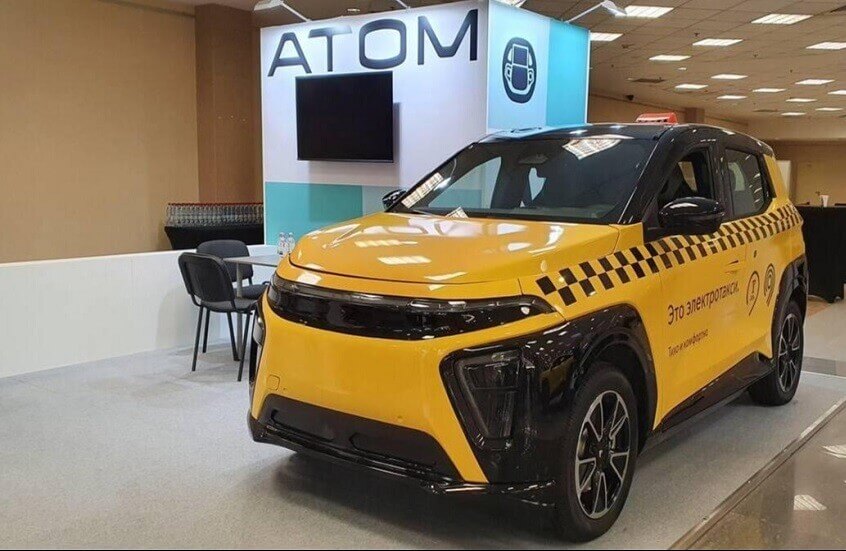 وقد عُرِضَت سيارة “أتوم” الكهربائية المخصصة للتاكسي لأول مرة في خريف 2023 خلال انعقاد مؤتمر “تاكسي” في سوتشي بجنوب روسيا، لكنها كانت آنذاك باللون الأبيض مع شريط أصفر على الجانبين. والآن أصبحت السيارة الكهربائية بالكامل باللون الأصفر مع سقف وأعمدة لامعة باللون الأسود. وظهرت على الأبواب الأمامية كتابة: “هذا تاكسي كهربائي. هادئ ومريح”.