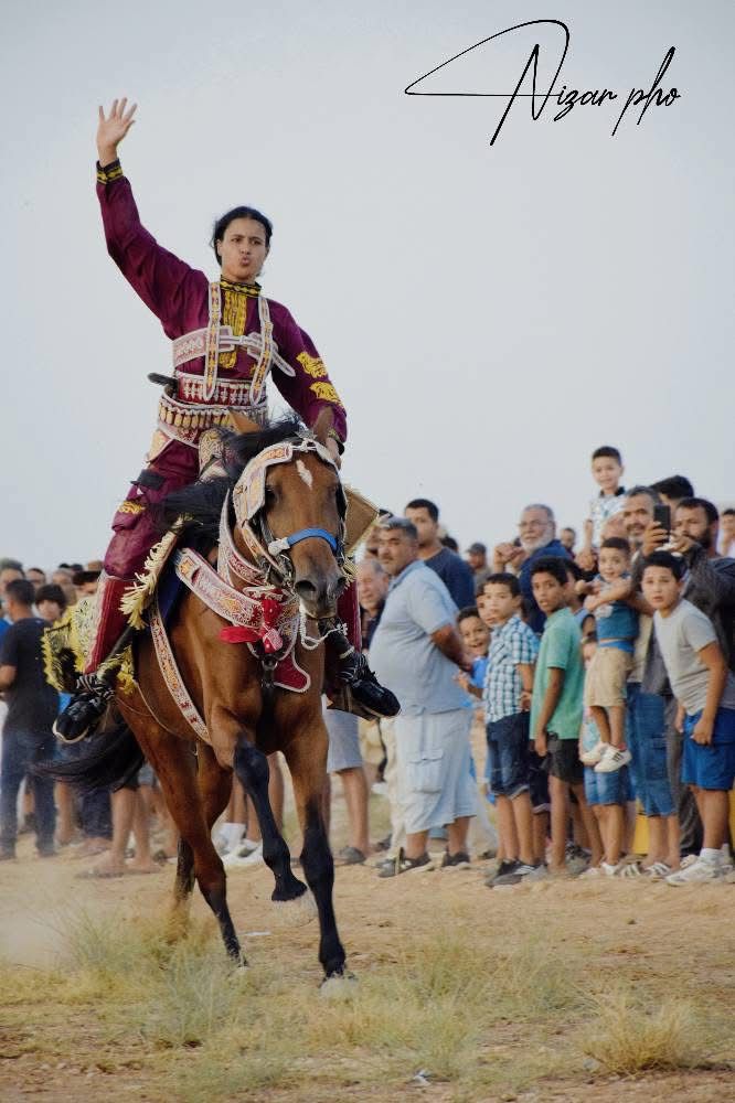 الأطفال يركضون بين الصفوف يلاحقون الخيل، الشيوخ يتابعون بعين فيها اعتزاز وفخر، والشباب يوثقون اللحظة بالهواتف. أما الساحة الرئيسية فقد تحولت إلى مسرح مفتوح يختلط فيه الماضي بالحاضر: هنا الزكرة تصدح، وهناك النساء يزغردن، وبينهما الطبول تدق بلا توقف.
