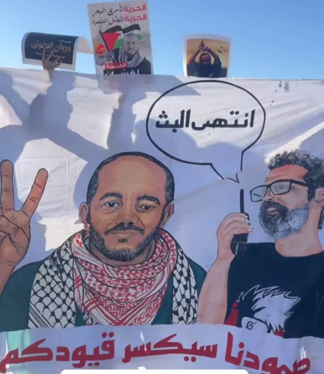 وكان حشد من التونسيين في استقبال المحررين الذي رفعوا رايات تونس وفلسطين وصدحوا بشعارات مساندة للقضية الفلسطينية.