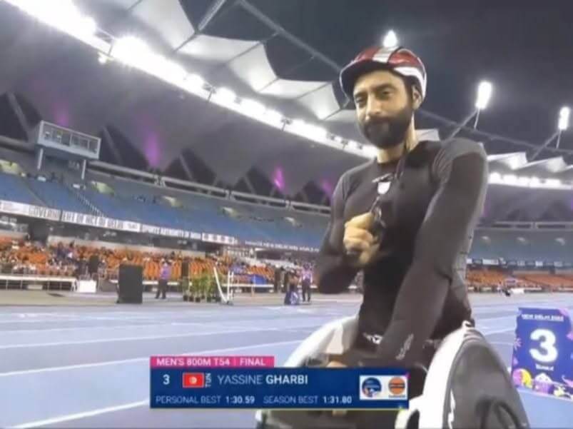 تُوج البطل البارالمبي التونسي ياسين الغربي، اليوم الأحد 05 أكتوبر 2025، بالميدالية البرونزية في نهائي سباق 800 متر T54 ، بتوقيت 1:31.53دق ، خلال الفترة المسائية لليوم التاسع و الاخير لبطولة العالم بارا-ألعاب القوى المقامة حاليا في نيودلهي بالهند .