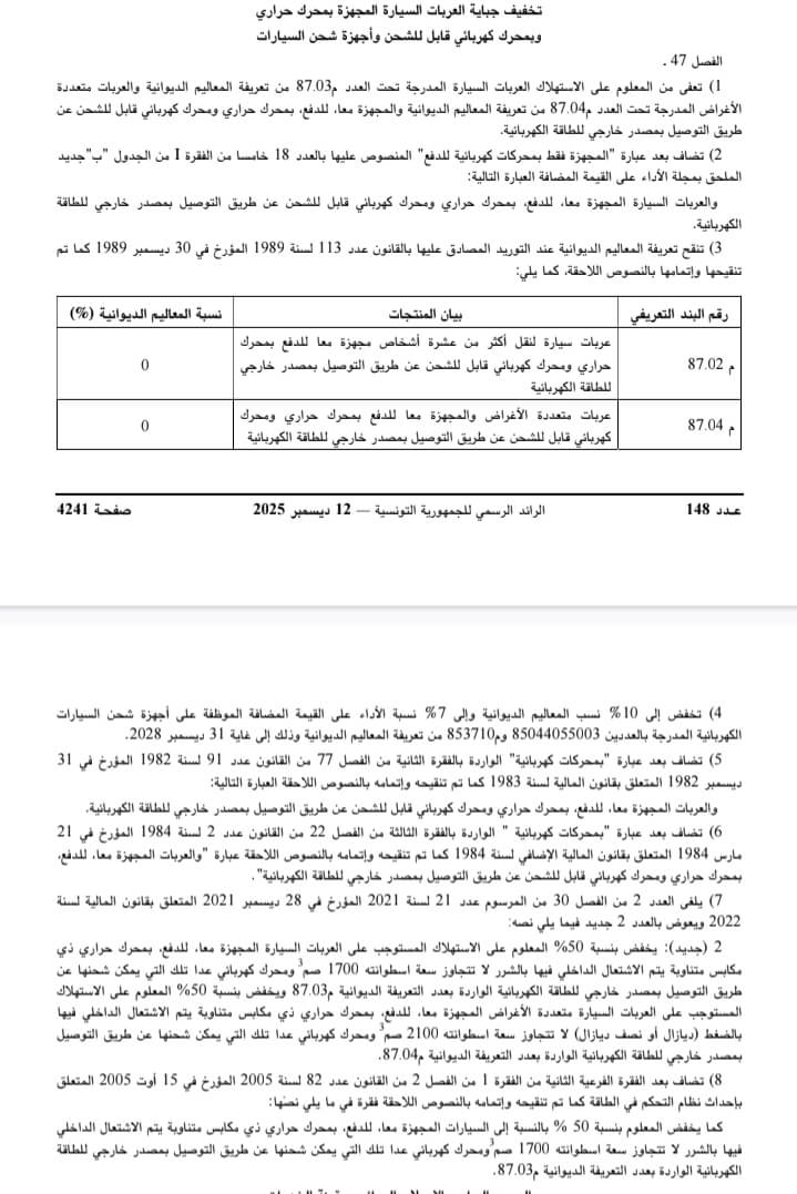 La loi des finances 2026, promulguée par le président de la République et parue vendredi dernier dans le Journal Officiel de la République Tunisienne (JORT) continue de faire couler de l’encre. Plusieurs de ses dispositions, notamment celles touchant à la fiscalité, interrogent par leur impact concret sur les secteurs économiques. L’article 47, consacré aux véhicules hybrides non rechargeables, en est l’illustration la plus récente. Présenté comme un levier pour encourager une mobilité plus propre, il soulève aujourd’hui des questions de cohérence, d’équité et de méthode.