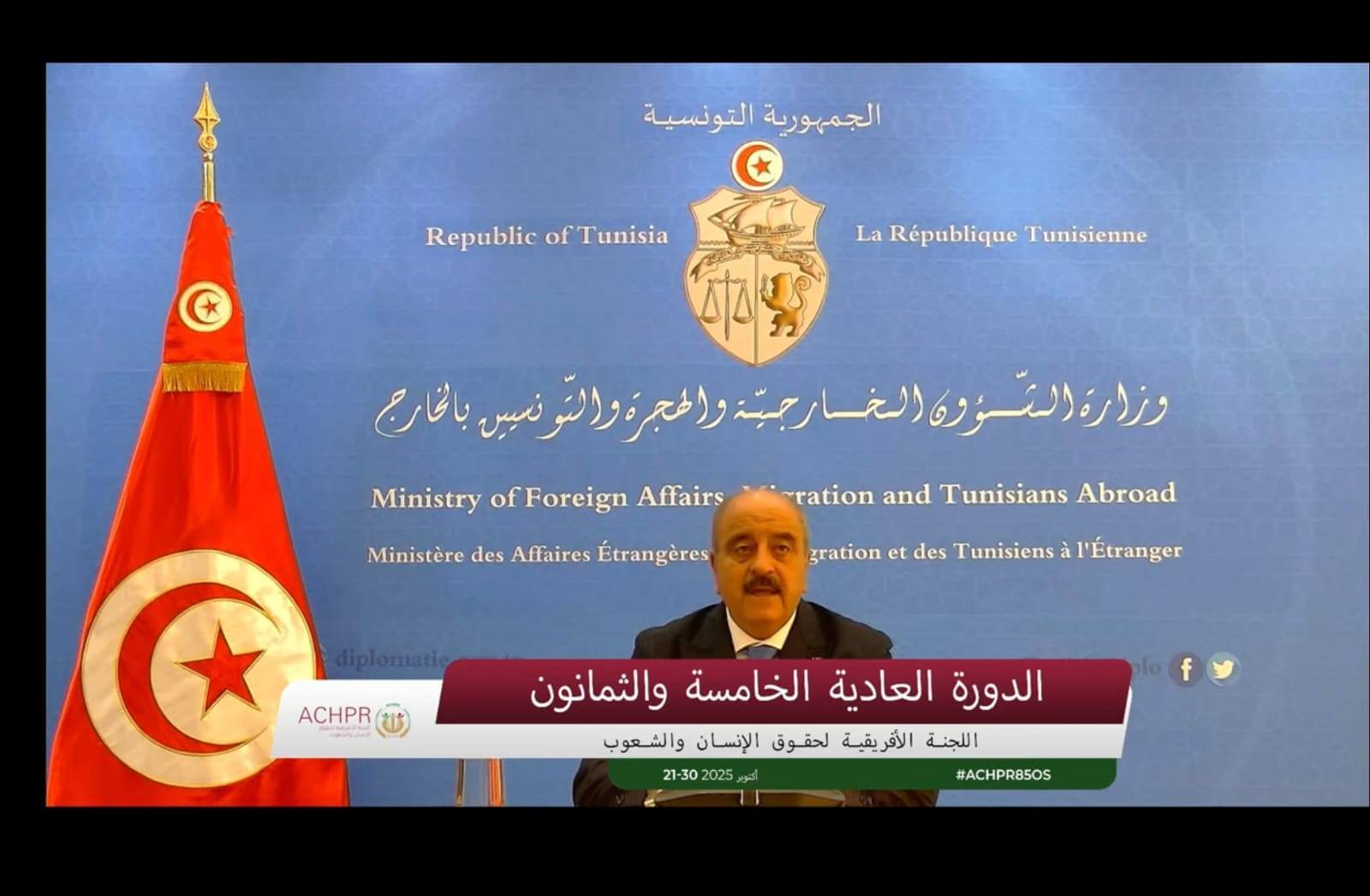 Le ministre des Affaires étrangères, de la migration et des Tunisiens à l’étranger, Mohamed Ali Nafti, a conduit la délégation tunisienne à la 85ᵉ session de la Commission africaine des droits de l’Homme et des peuples, tenue à Banjul (Gambie) du 21 au 30 octobre 2025.