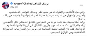 Dans un post publié, ce vendredi 25 décembre 2020 sur sa page Facebook officielle, Chahed a réitéré qu’il saisira la justice quant aux instigateurs de ces informations erronées.