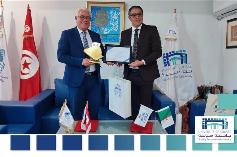 L’Université de Sousse a officialisé sa coopération avec le Centre Universitaire de Maghnia (Algérie) à travers la signature d’un accord de partenariat en présence du Dr Kadri Riadh, directeur de l’établissement algérien.