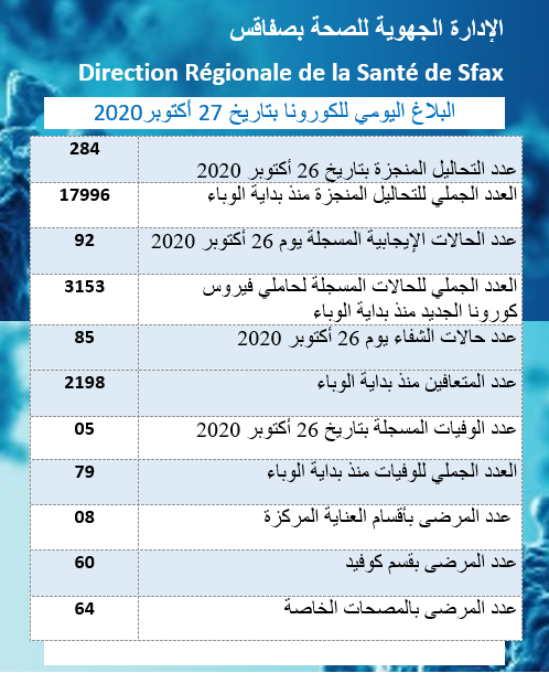 Home Santé Covid_19 : 5 nouveaux décès et 92 contaminations à Sfax