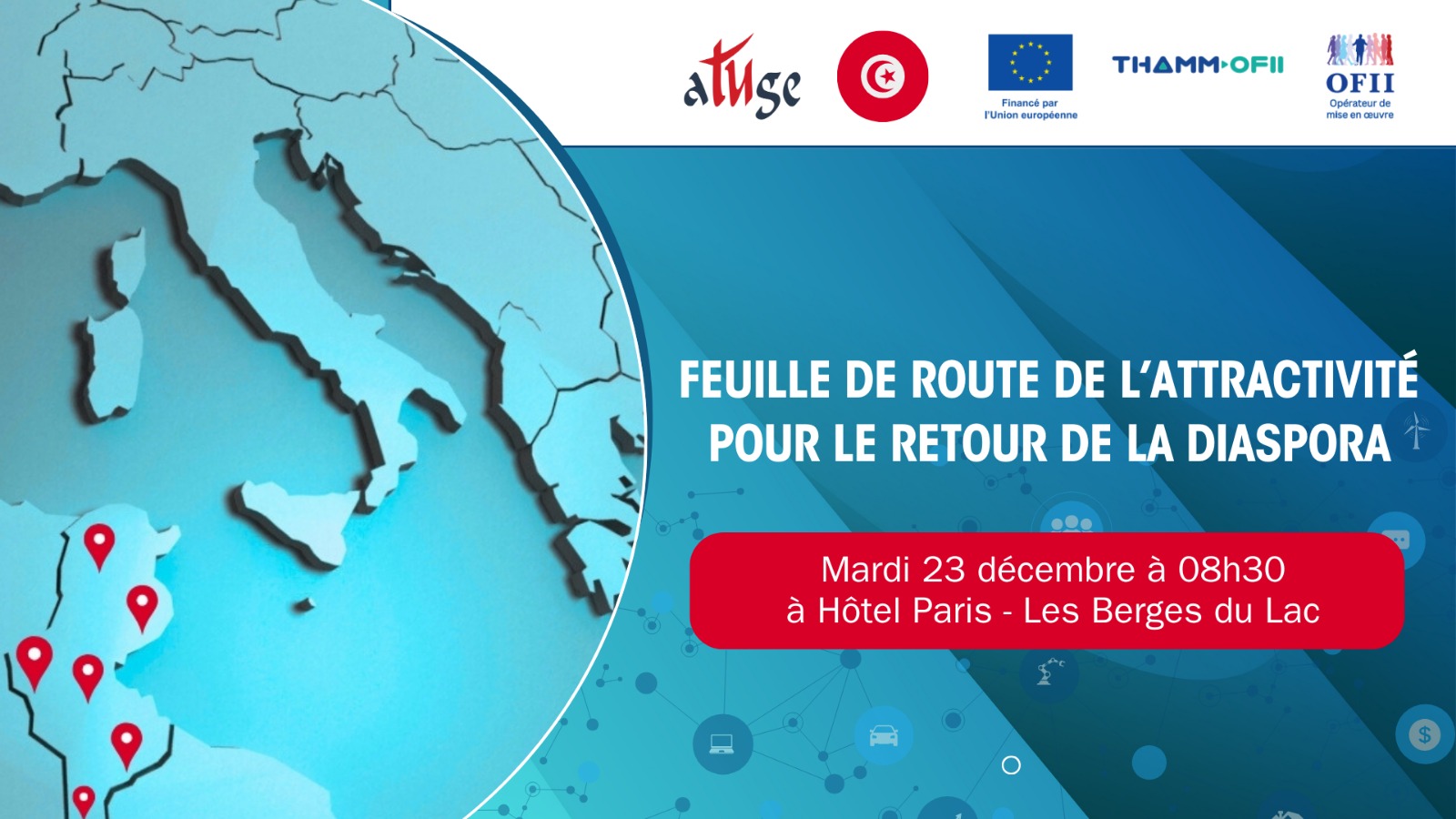 Cette étude s’inscrit dans le cadre du projet THAMM-OFII financé par l’Union européenne et mis en œuvre par l’Office Français de l’Immigration et de l’Intégration OFII et vise à présenter les principales opportunités et obstacles au retour des compétences tunisiennes expatriées tout en engageant un dialogue constructif avec les acteurs institutionnels économiques et sociaux.