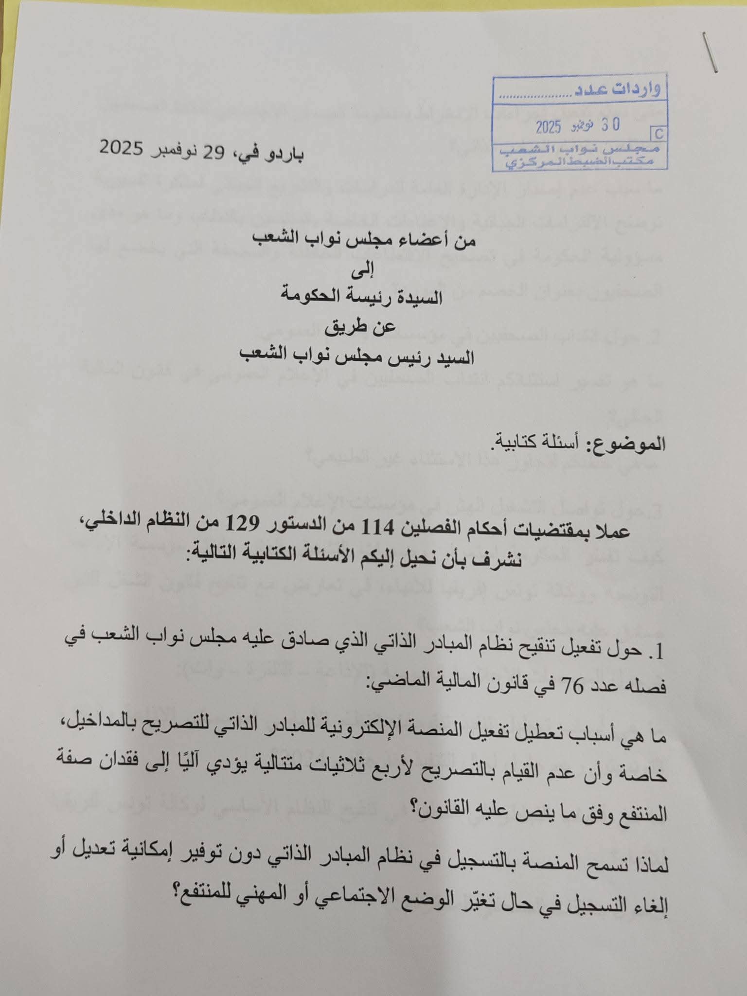 Le député Mohamed Ali a annoncé, ce dimanche, avoir officiellement saisi la cheffe du gouvernement, en coordination avec plusieurs élus de l’Assemblée des représentants du peuple, d’une série de questions écrites urgentes portant sur la dégradation alarmante des droits des journalistes en Tunisie.