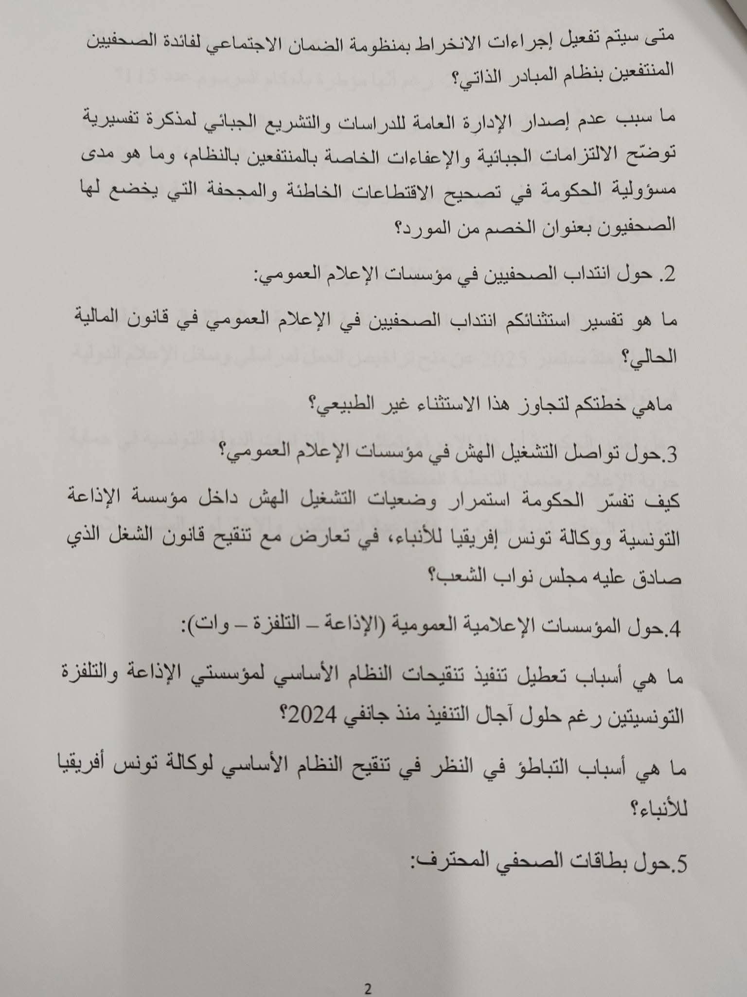 La poursuite du travail précaire au sein de la radio, de la télévision et de l’agence TAP, en violation de l’esprit de la réforme du Code du travail.