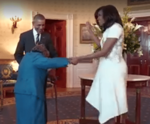 Son rêve était de visiter la Maison Blanche et de rencontrer le couple présidentiel Obama. Virginia McLaurin, âgée de 106 ans, n’a pas pu se retenir en rencontrant le président américain qui l’a invitée, elle a même sauté et dansé de joie ! Sa vidéo partagée par la Maison Blanche a fait le tour du monde : près de 13 millions de vues en seulement 7 heures !