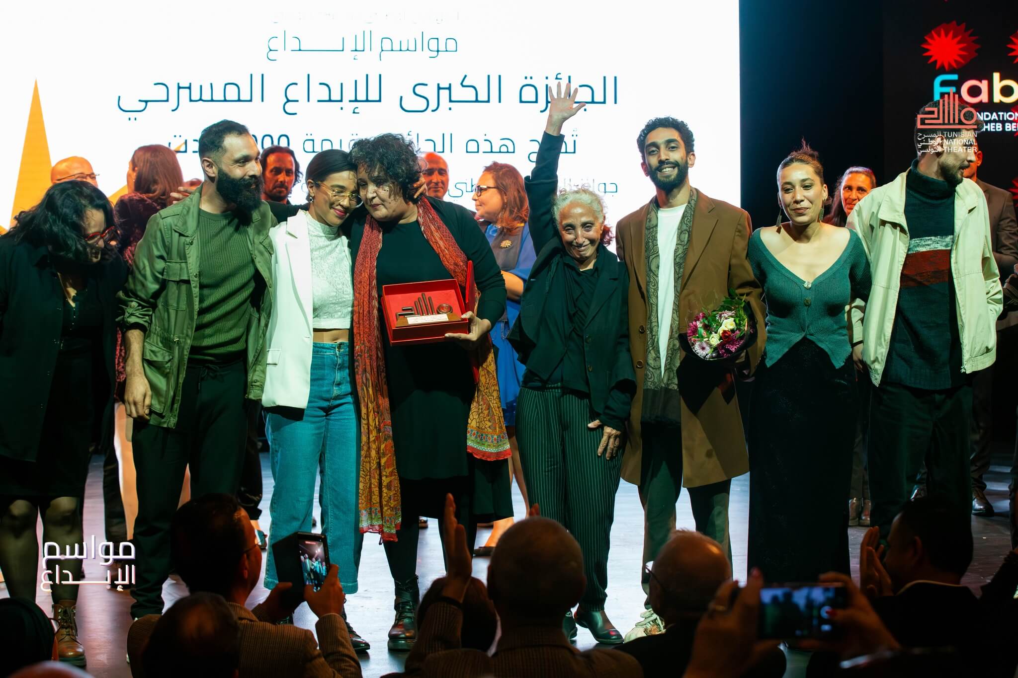 Au total, 14 productions théâtrales créées entre novembre 2024 et octobre 2025 étaient en lice pour les différents prix de cette édition organisée par le Théâtre national tunisien, en partenariat avec l’Association Abdelwahab Ben Ayad. Le jury, présidé par Mohamed Medyouni et composé de Salah Faleh, Faïza Massoudi, Ramzi Aziz et Henda Ben Ayed (représentante de l’association partenaire), a salué la vitalité et la diversité de la scène théâtrale tunisienne.