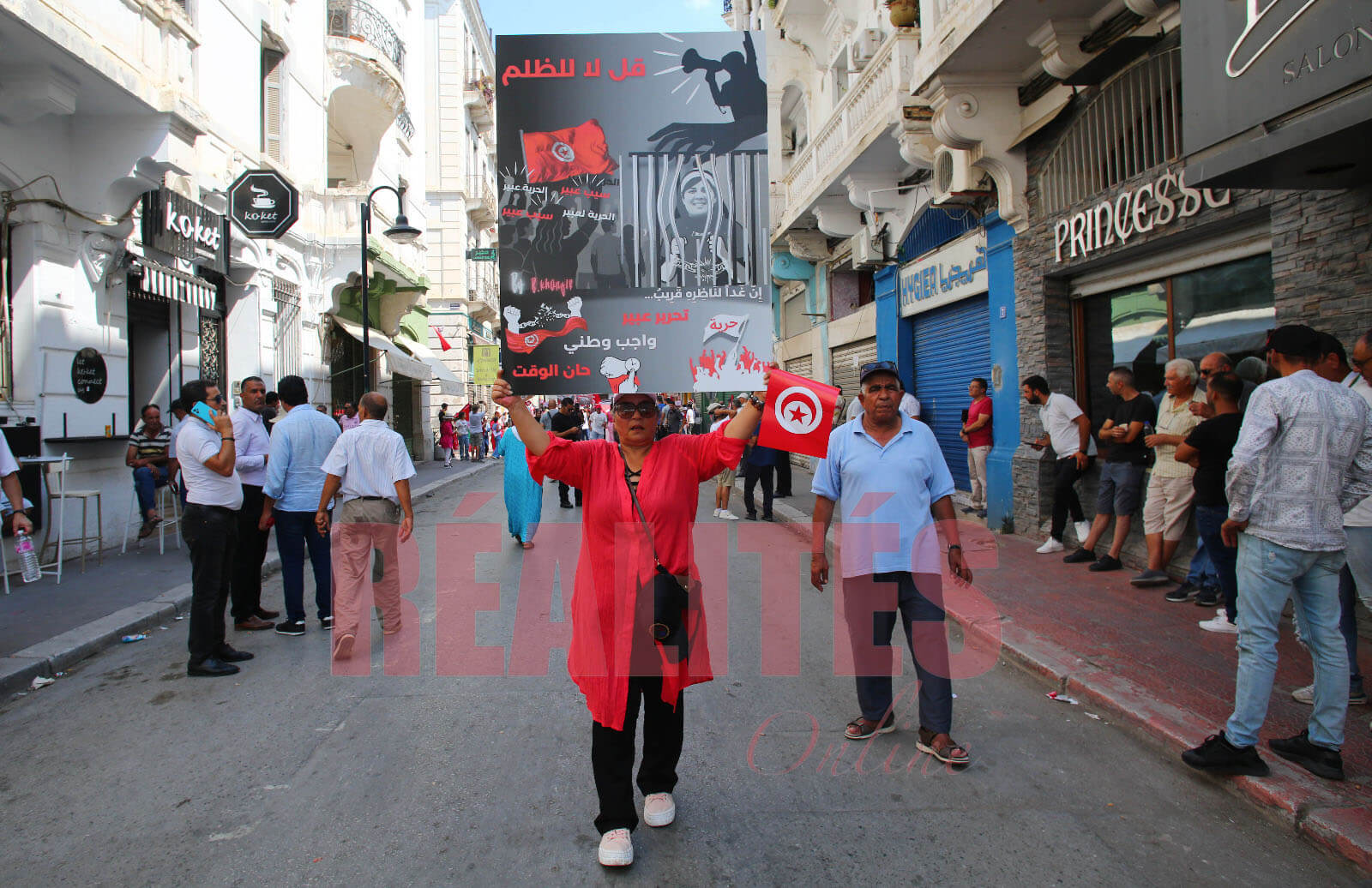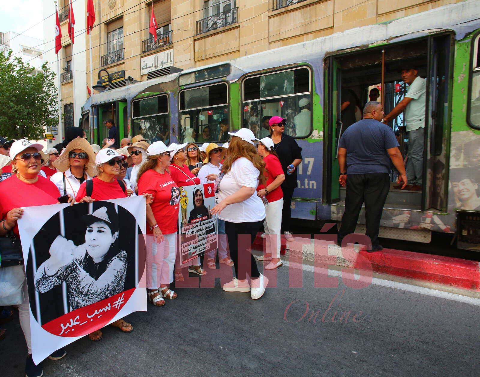 Les rues de la capitale ont vibré au rythme des slogans des manifestants, majoritairement des femmes vêtues de pulls rouges, couleur emblématique du PDL, et arborant le hashtag #Libérer_Abir, devenu le symbole de leur mobilisation. La marche, empreinte d’une forte charge émotionnelle, a débuté par l’interprétation de l’hymne national tunisien, renforçant l’élan patriotique de la foule. Les voix se sont élevées pour crier : « Ô citoyens victimes, sortez défendre la cause ! », « La justice est la solution, indépendance à la justice ! », « Liberté, liberté à Abir la patriote ! », « Liberté, liberté, vous avez exagéré dans les arrestations ! », « Relâchez Abir ! »…