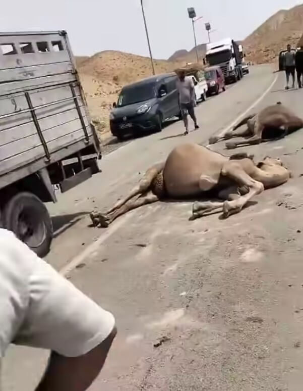 Selon les informations relayées par Radio Tataouine, le drame est survenu lorsqu’un camion a percuté de plein fouet un troupeau de dromadaires qui traversait la chaussée. Le choc a provoqué la mort de plusieurs animaux et causé des blessures graves à une personne, évacuée en urgence vers l’hôpital régional pour recevoir les soins nécessaires.