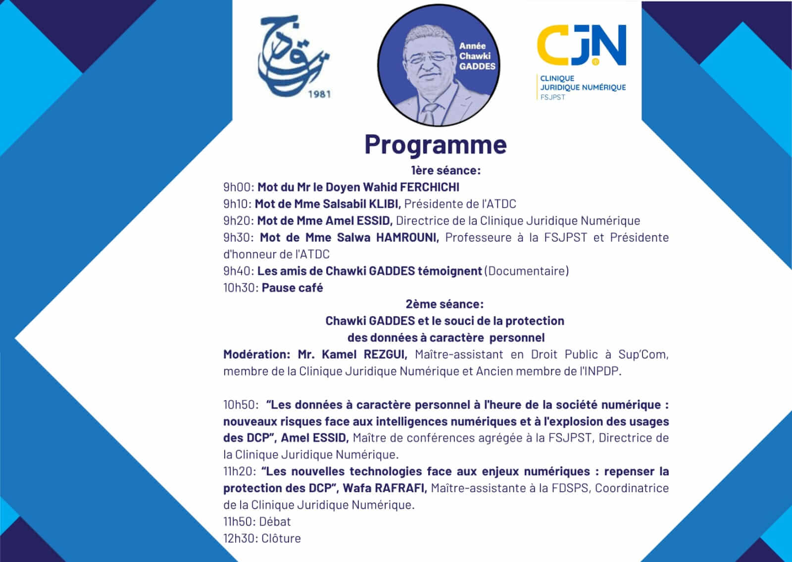 La cérémonie, qui se tiendra à la Faculté des sciences juridiques, politiques et sociales de Tunis, à partir de 8h30 dans la salle Dhali El Jazi comprendra la projection d’un documentaire sur sa vie et son parcours, suivie de deux conférences autour du thème de la protection des données personnelles, domaine dans lequel Gaddès fut un pionnier et un militant discret, mais ferme.