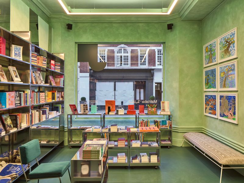 Les espaces intérieurs portent des noms issus des traditions d’hospitalité et de convivialité d’Afrique et du monde arabe, comme une invitation permanente. Au rez-de-chaussée, la Maktaba (librairie) est conçue avec le Palestine Festival of Literature et opérée par Burley Fisher Books, à côté du café Aoula dirigé par la cheffe et commissaire culinaire tunisienne Boutheina Ben Salem, qui célèbre la cuisine tunisienne comme mémoire sociale vivante. Le même niveau abrite le Majlis, grande salle d’expositions et de rencontres. En sous-sol, la Minassa (plateforme) accueille projections et concerts avec des technologies audio-visuelles de pointe (d&b audiotechnik, Unilumin). Le deuxième étage abrite la bibliothèque Iqra, dédiée à la lecture et à la réflexion. D’autres niveaux ont été volontairement laissés évolutifs pour s’adapter aux besoins futurs.