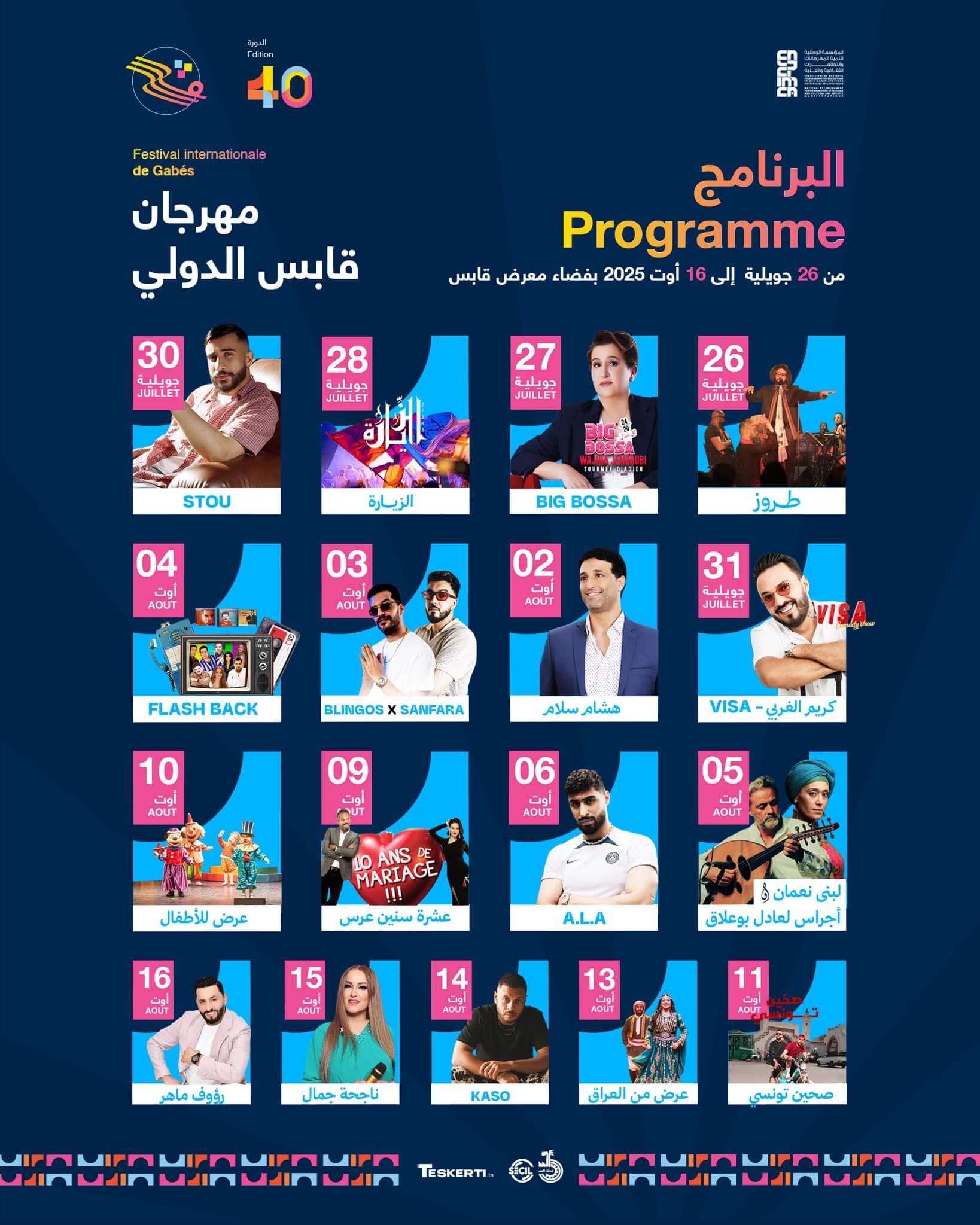 Cette 40e édition promet de faire vibrer la ville de Gabès avec une ambiance festive et un mélange de talents tunisiens et internationaux.