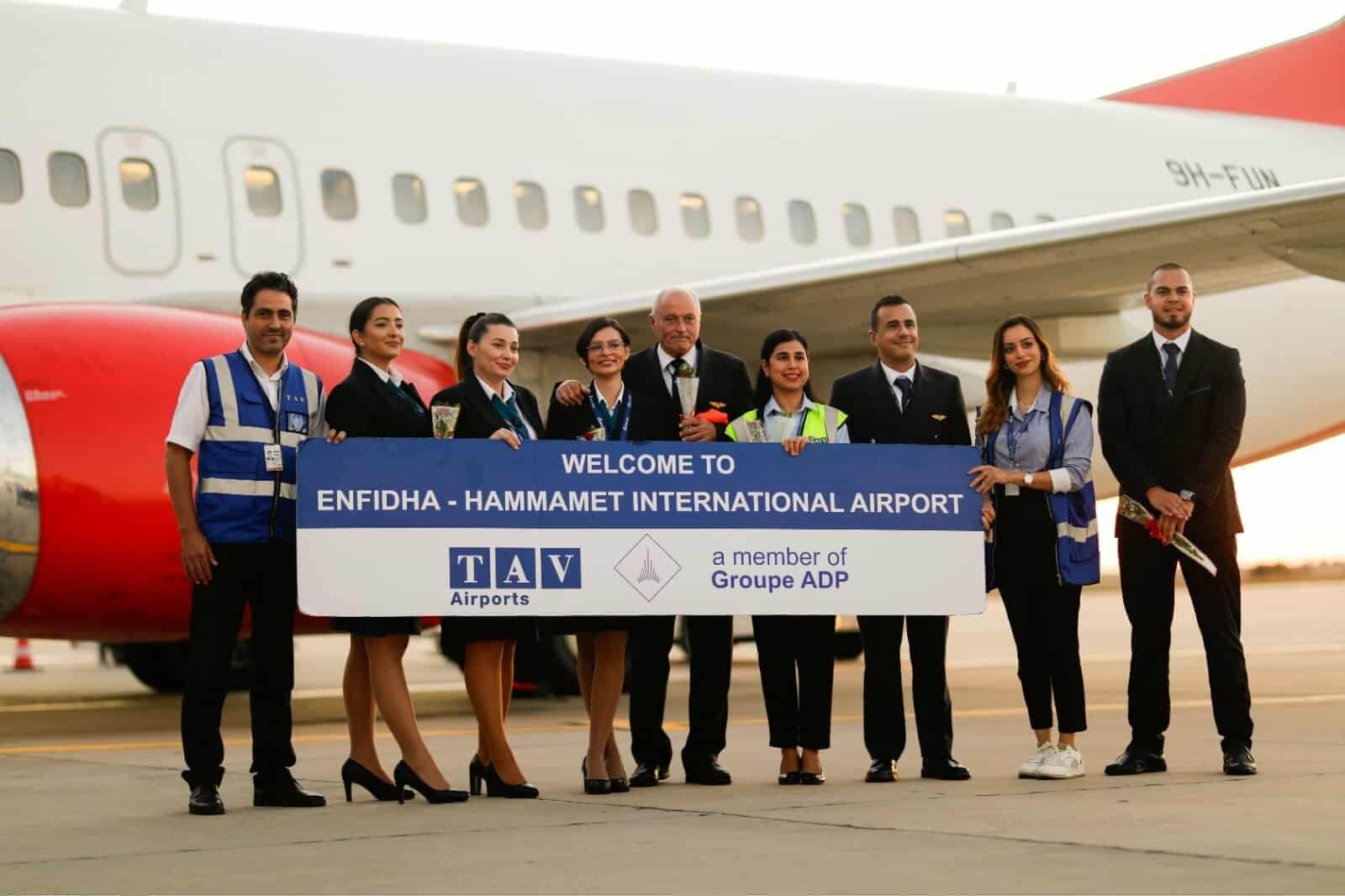 Pour marquer cette nouvelle liaison, TAV Tunisie a organisé une cérémonie d’accueil aux couleurs de la Tunisie : remise de fleurs à l’équipage, accueil personnalisé et grand panneau de bienvenue ont donné à l’événement une dimension symbolique forte.