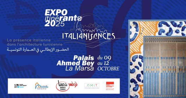 À partir du 9 octobre 2025, le palais Ahmed Bey, sis à la Marsa et nouvellement restauré accueillera une exposition itinérante et pédagogique intitulée : ITALIANISANCES : la présence italienne dans l’architecture tunisienne.