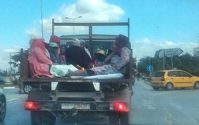 Sur ce camion, appartenant au ministère de l’Agriculture (matricule numéro 11), on voit des femmes entassées comme du bétail. Il s’agirait du personnel du ministère. On y voit tout ce qui pourrait représenter un danger et une atteinte à ces fonctionnaires, à leur sécurité et à leur dignité.