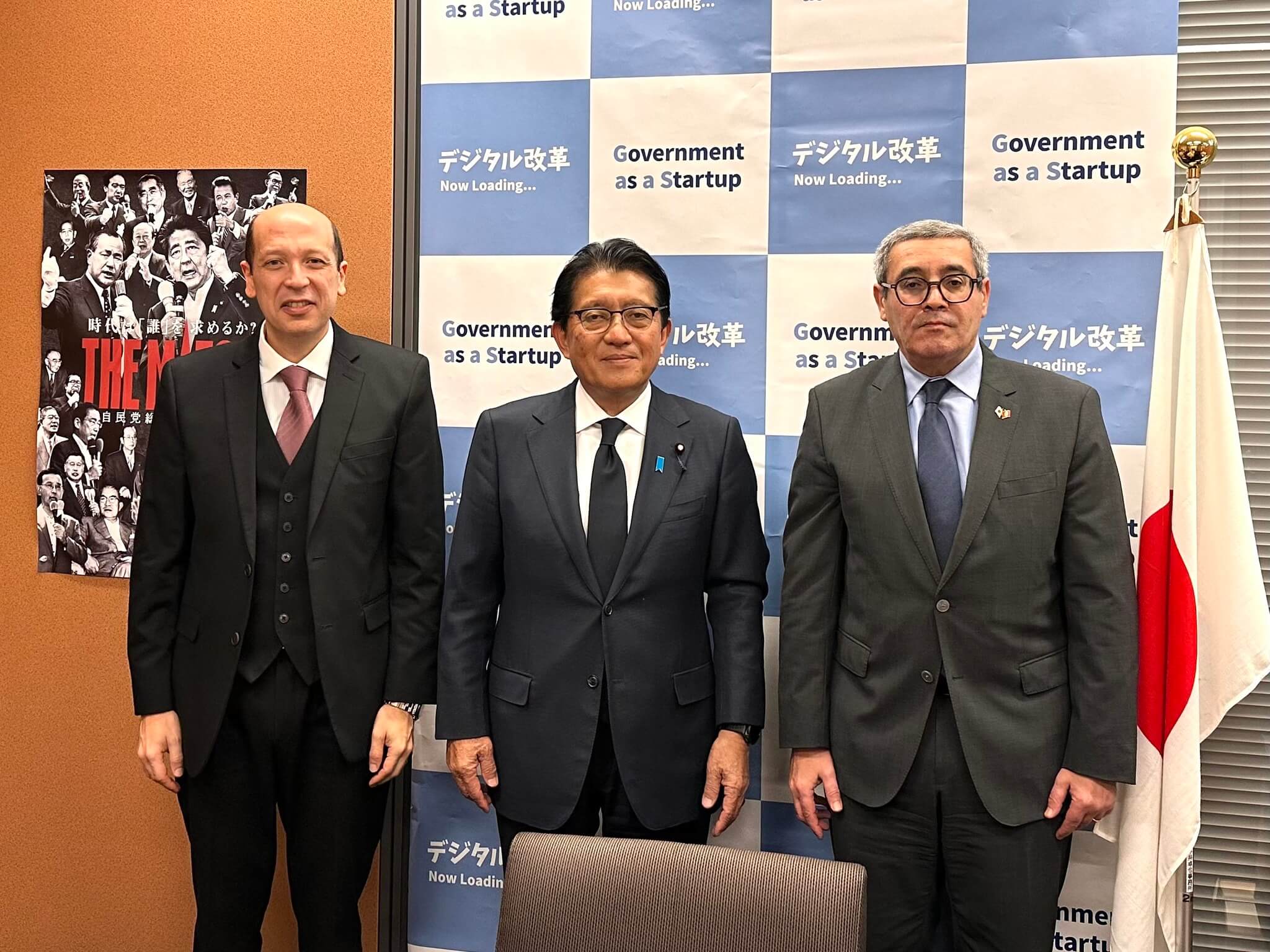 L’ambassadeur tunisien à Tokyo, Ahmed Chafra, a rencontré au Parlement japonais Takuya Hirai, membre du Parti libéral-démocrate (LDP) et ancien ministre du Numérique. Cette rencontre a été l’occasion d’évoquer les préparatifs du 70ᵉ anniversaire des relations diplomatiques entre la Tunisie et le Japon, mais surtout de discuter de nouvelles pistes de coopération concrètes entre les deux pays.
