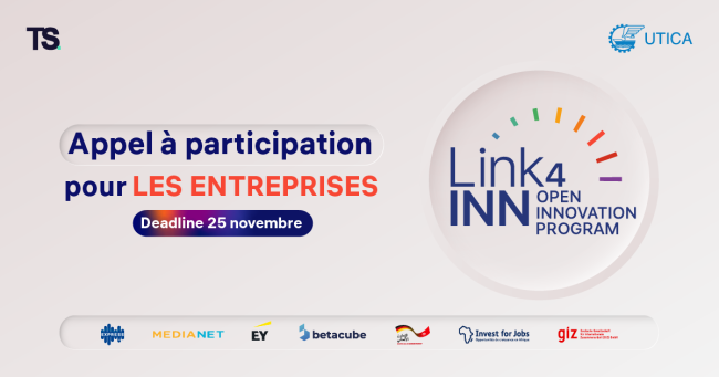 L'UTICA et TunisianStartups lancent un appel à participation au programme d’Open Innovation, Link4INN. Cet appel vise les grandes entreprises et PMEs en quête d’accès à l’innovation et à une réponse à des challenges solutionnables par des technologies de pointe.