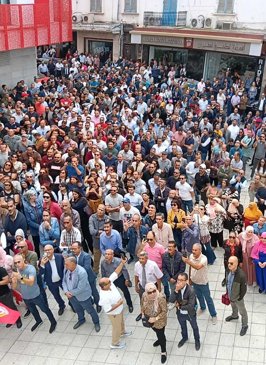 Dès les premières heures de la matinée, une forte affluence d’employés et de cadres du secteur a été observée devant le siège central de l’UGTT. Les manifestants ont scandé des slogans appelant à la justice salariale et dénonçant ce qu’ils considèrent comme un mépris des partenaires sociaux à l’égard de leurs revendications.