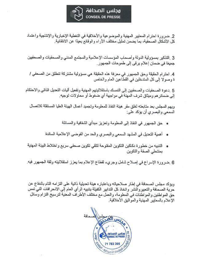 Le Conseil met également en garde contre le traitement partiel ou l’omission des événements nationaux, qui peut affaiblir la confiance du public dans les médias, favoriser les rumeurs et la propagation de fausses informations sur les réseaux sociaux, et nuire aux standards éthiques de la profession.