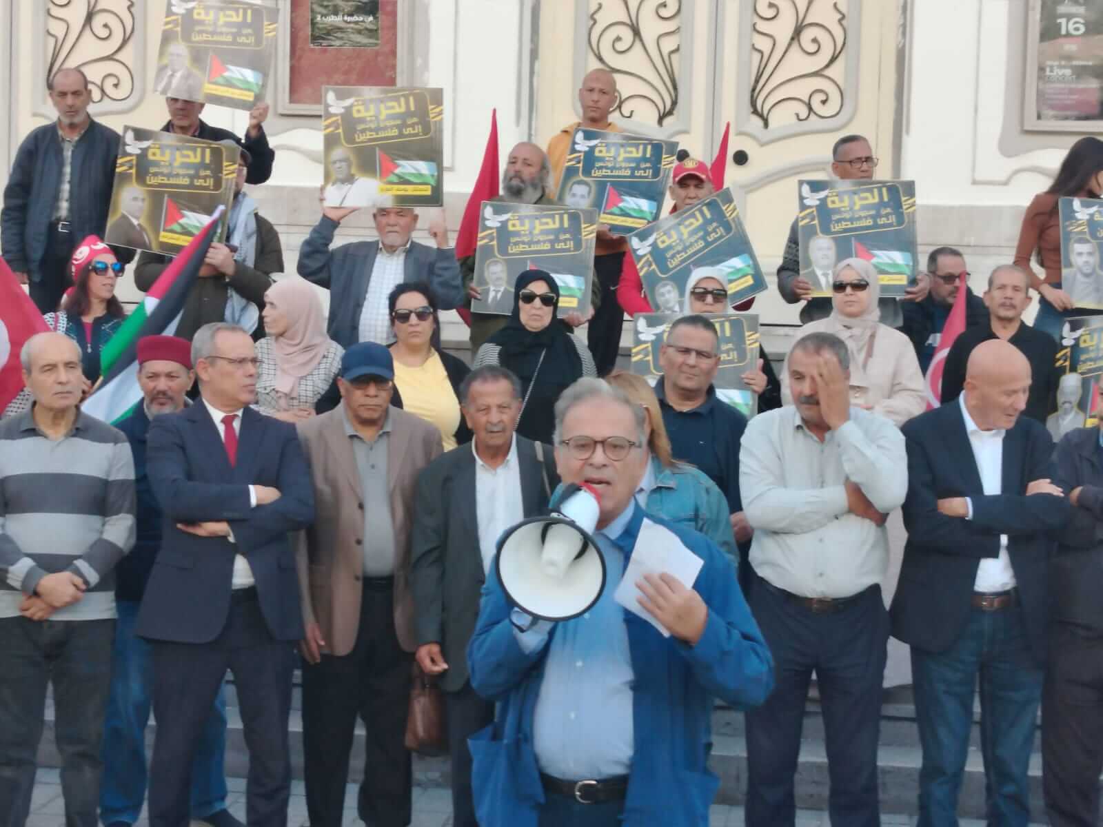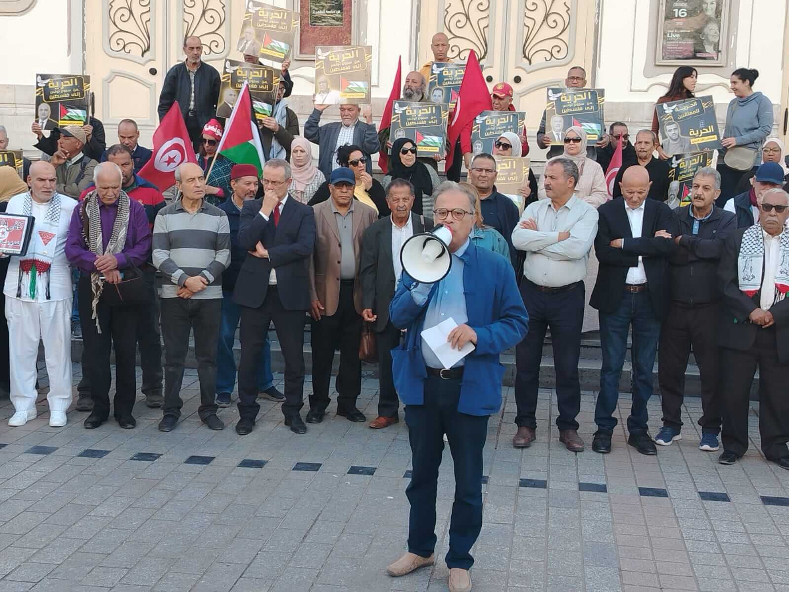 Les participants ont scandé des slogans exigeant la libération immédiate des prisonniers politiques et ont relié cette lutte aux combats pour la liberté dans d’autres régions, lançant notamment : « Nous exigeons la Liberté, des prisons tunisiennes jusqu’à la Palestine».
