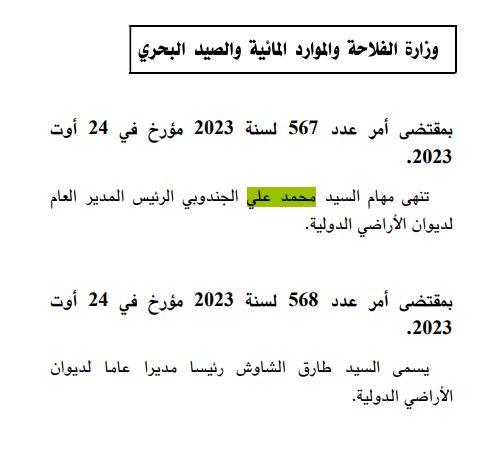 Mohamed Ali Jendoubi, PDG de l’Office des Terres Domaniales, a été démis de ses fonctions. C’est ce qui ressort du numéro du vendredi 25 août 2023 du Journal Officiel de la République Tunisienne (JORT). Le limogeage a été décidé par un décret du président de la République, Kaïs Saïed.