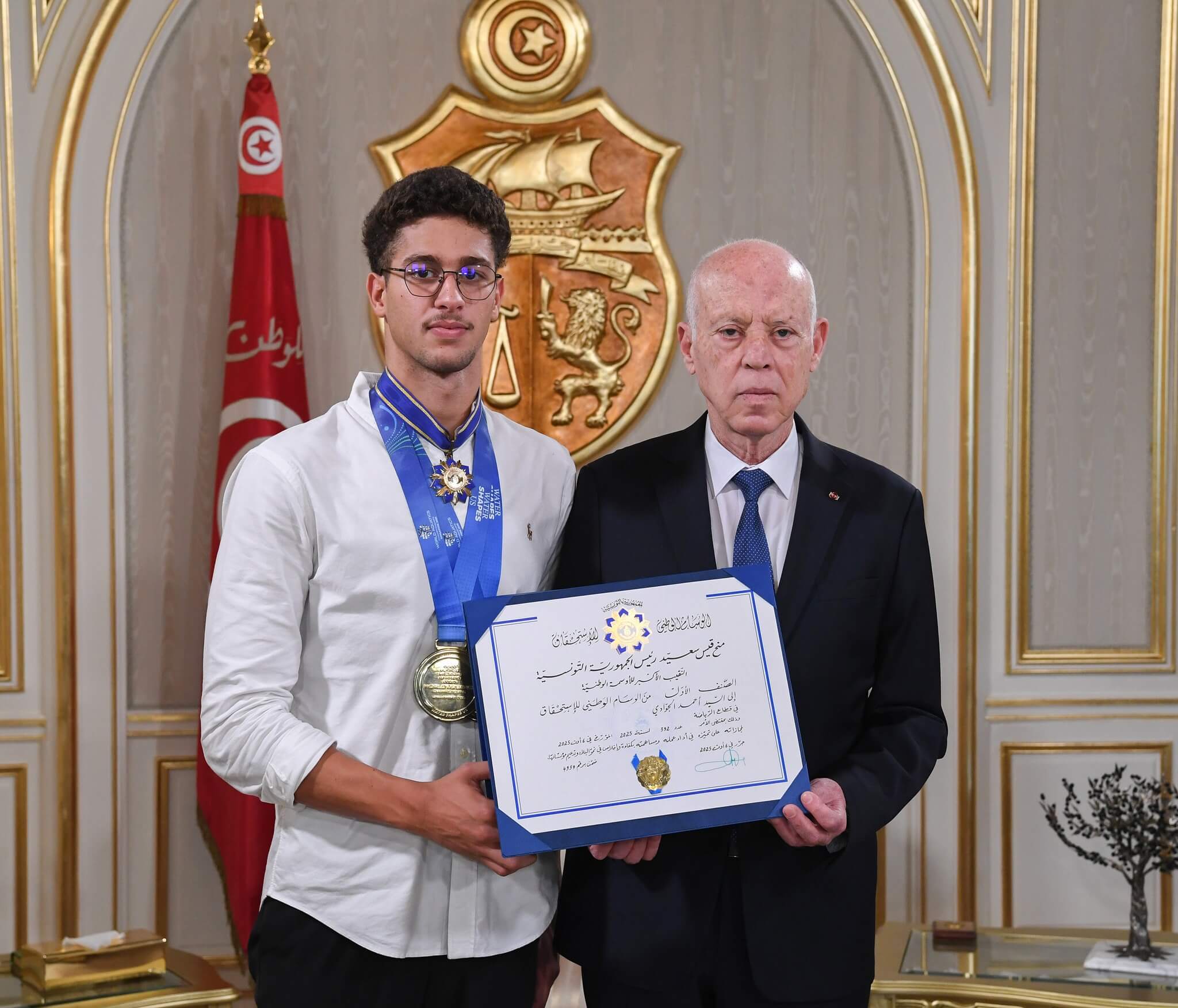 Home Actualités Natation : Le champion Ahmed Jaouadi décoré par le Chef de l’État après son doublé en or