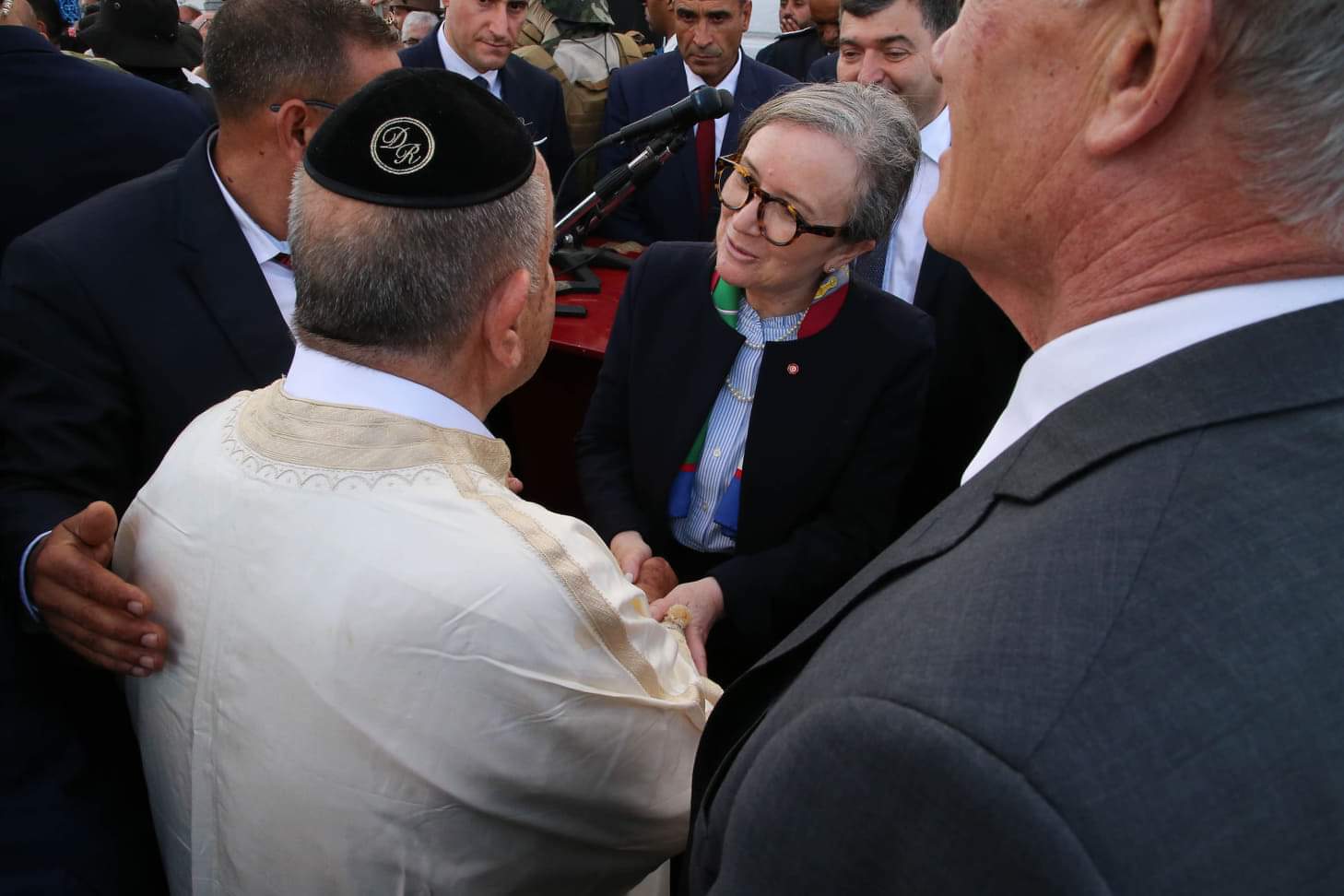 A l’occasion du pèlerinage juif qui se déroule du 14 au 22 mai courant, la cheffe du gouvernement Najla Bouden s’est rendue ce mercredi 18 mai 2022 à la synagogue de la Ghriba à Djerba. Lors de son allocution, Najla Bouden s’est félicitée de la réussite de cette manifestation religieuse, culturelle et touristique d’envergure internationale considérant que la Tunisie restera fidèle à ses valeurs et à ses caractéristiques civalisationelles soit une terre de coexistence et de tolérance entre les religions.