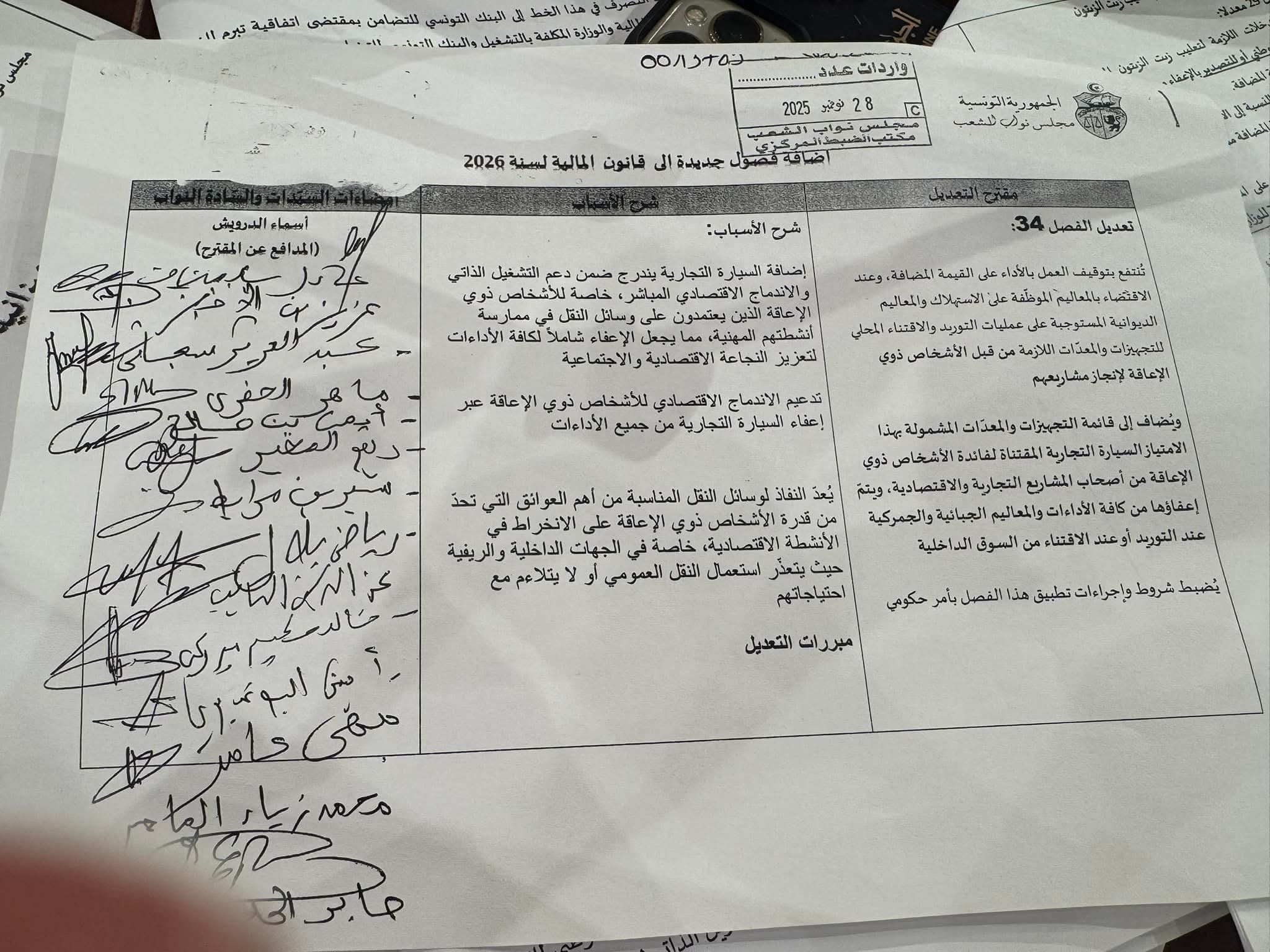 Un amendement de l’article 34 du projet de loi de finances 2026 portant sur l’octroi d’avantages fiscaux et douaniers au profit des personnes en situation de handicap souhaitant créer leurs propres projets a été finalement rejeté.