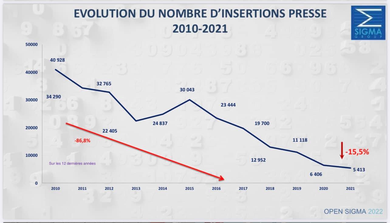 Home A la Une Presse écrite: Les insertions publicitaires en baisse de 86,8% en 10 ans (Infographie)