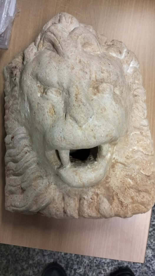 Lors d’un contrôle, une sculpture en pierre représentant une tête de lion a été découverte parmi les bagages d’un voyageur de nationalité étrangère, sur le point de l’exporter illégalement.