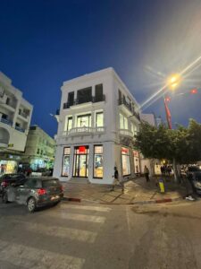 Le bâtiment occupe un emplacement stratégique au cœur du centre-ville de Sousse, une zone très fréquentée et très visible. Sa situation privilégiée, donnant sur trois rues différentes, lui offre une façade imposante et attrayante, susceptible d’attirer l’attention des passants.