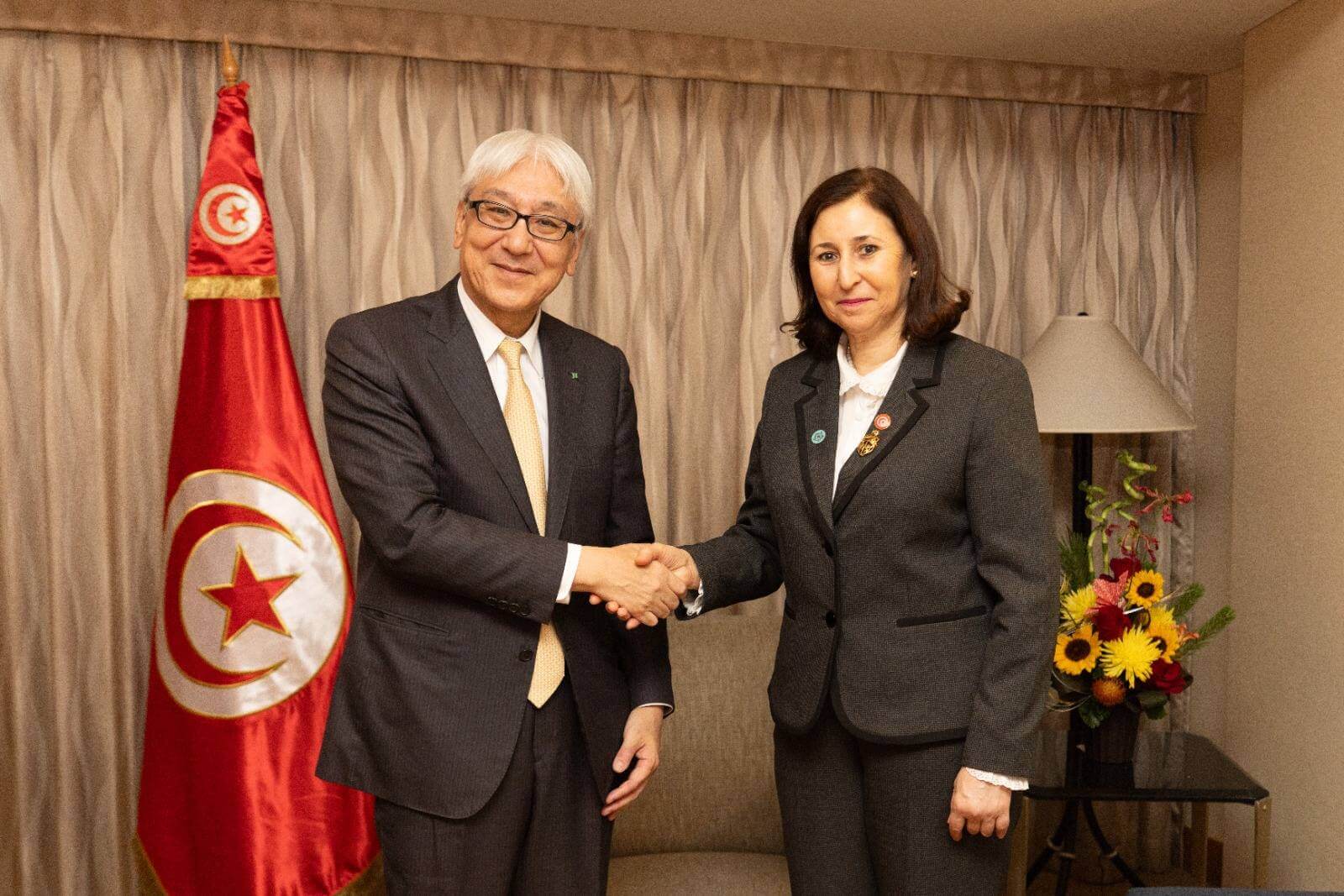 Elle s’est entretenue avec Tetsuro Yano, président de l’Association japonaise pour l’économie et le développement en Afrique (AFRECO), ainsi qu’avec des représentants de grandes entreprises, dont la fédération Keizai Doyukai et le groupe Toyota Tsusho. L’ambassadeur de Tunisie au Japon, Ahmed Chefra, ainsi que des responsables de la présidence du gouvernement et du ministère des Affaires étrangères, de la Migration et des Tunisiens à l’étranger, étaient également présents.