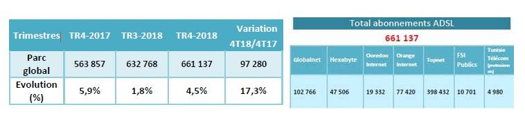Il faut souligner que le parc ADSL dans notre pays a augmenté de 97,3 mille abonnements soit une croissance de 17,3% durant l’année 2018.